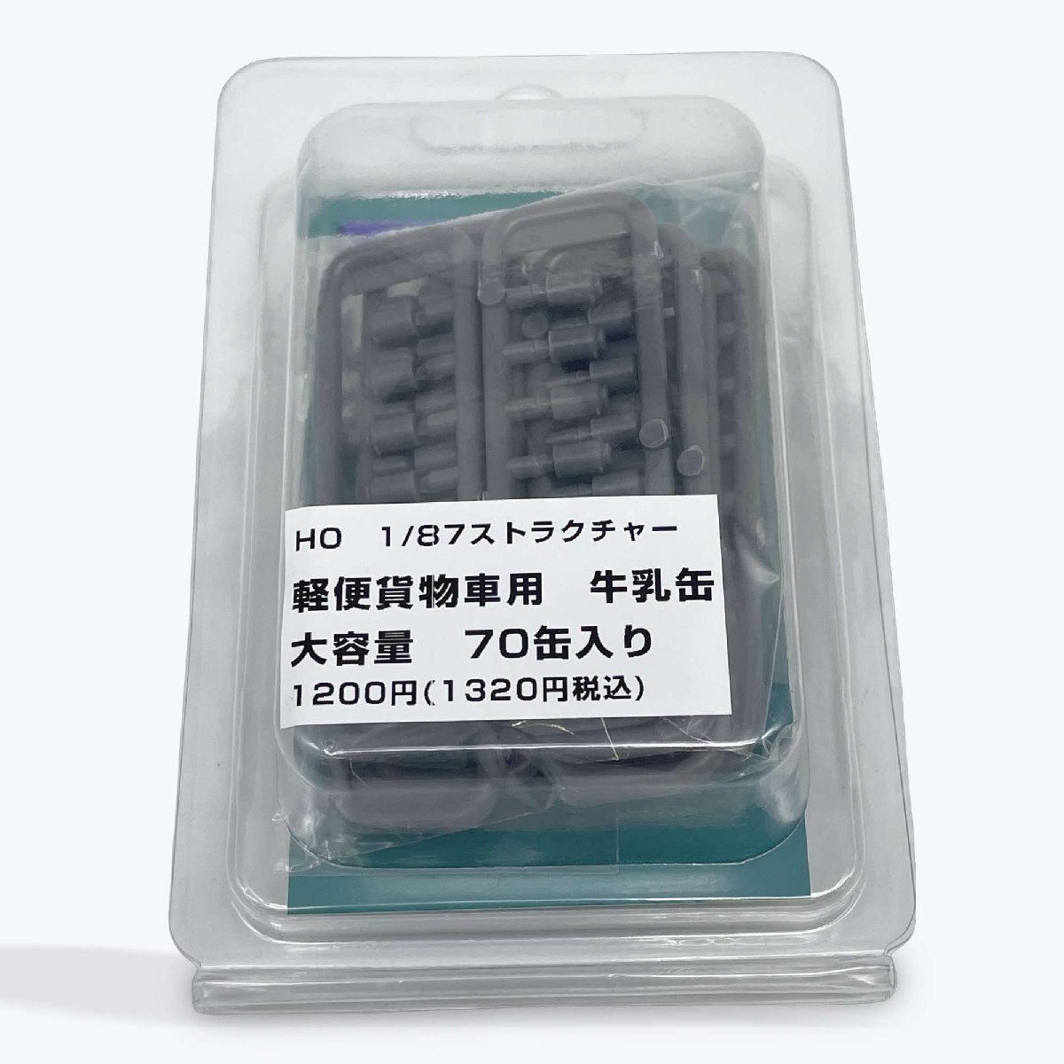 昭和初期に北海道で活躍した簡易軌道鉄道にて運ばれていた牛乳缶を模型化70缶を1セットにしてます。