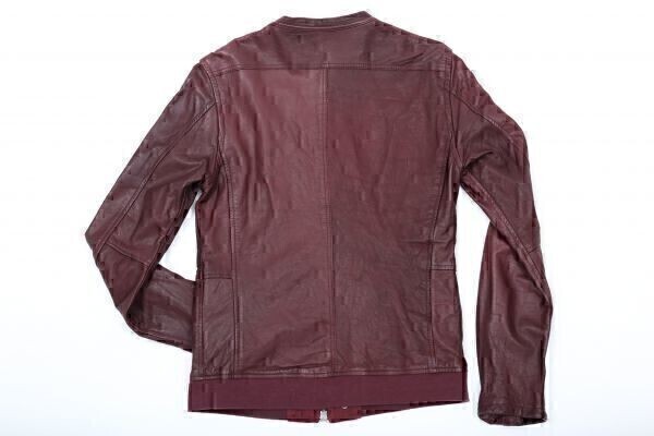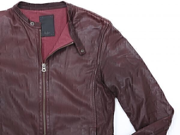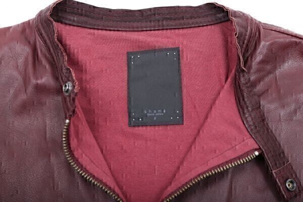 中古★shama シャマ★シングルライダースジャケット 42★XS【41167nu】ボルドー 暗赤【本物保証】超細身★オリジナル★エアレザー★本革