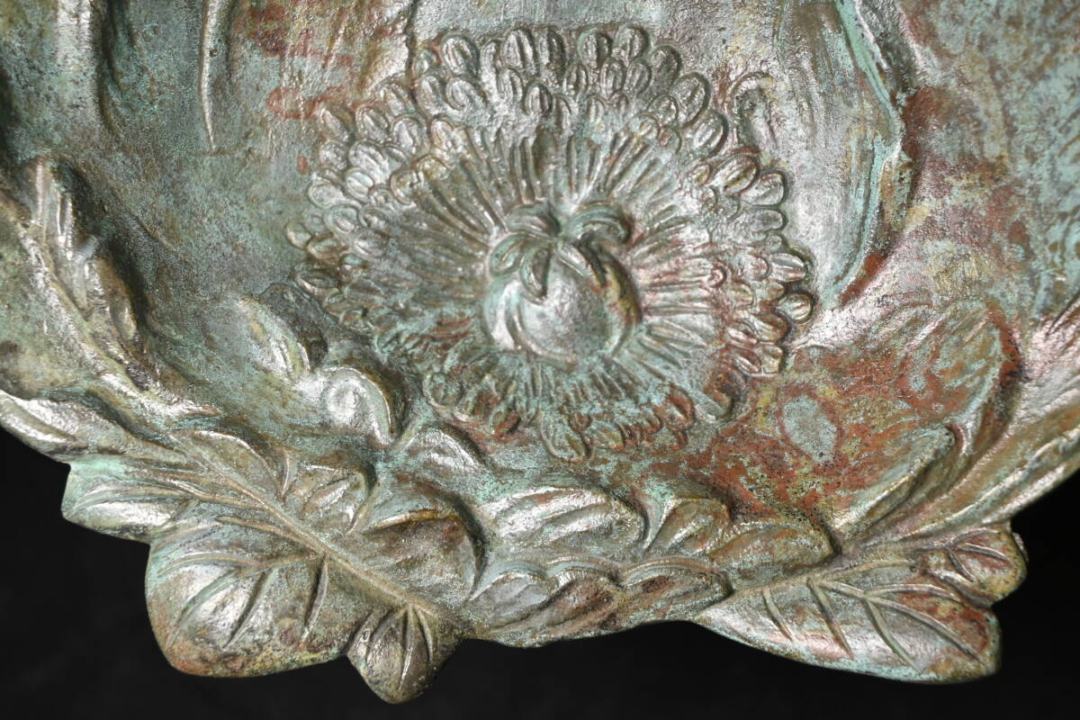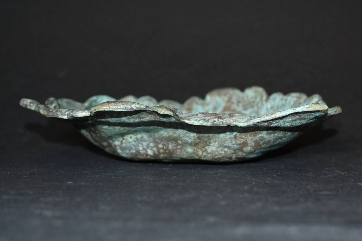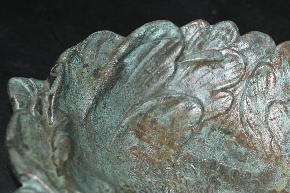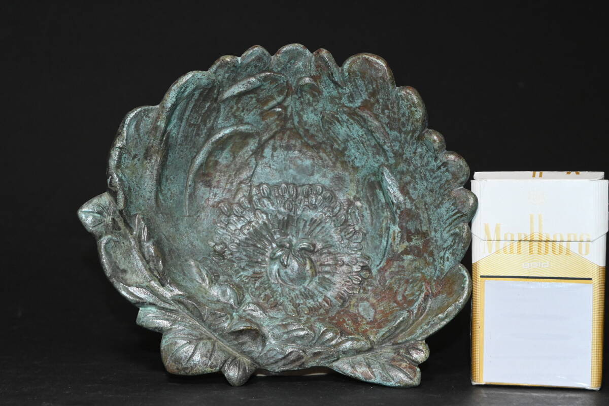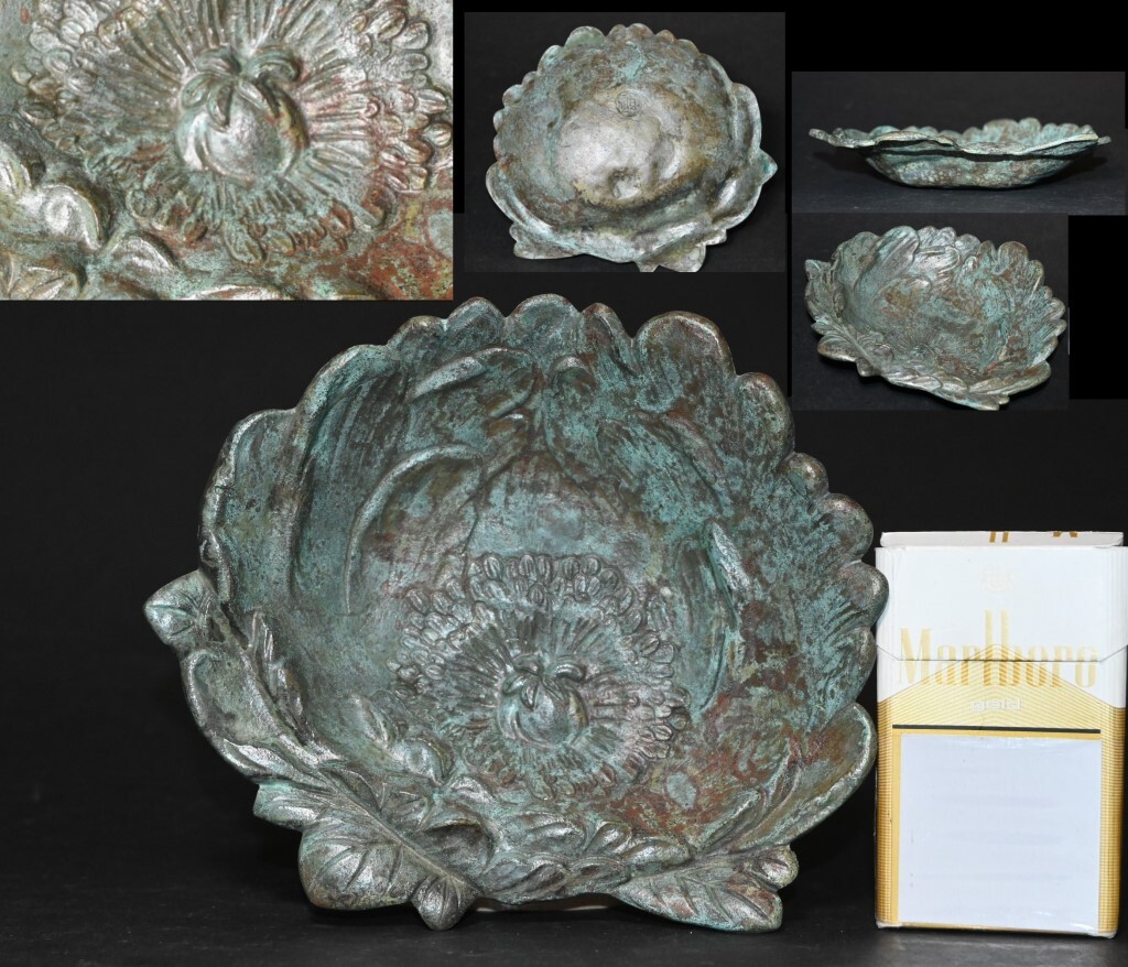 ブロンズ 牡丹形 トレイ 小物入れ 飾皿 灰皿 灰器 時代 彫刻 在銘 箱無 詳細不明 アンティーク 花モチーフ 置物 オブジェ | |||