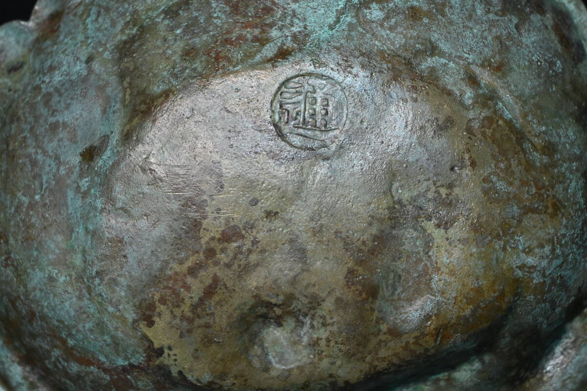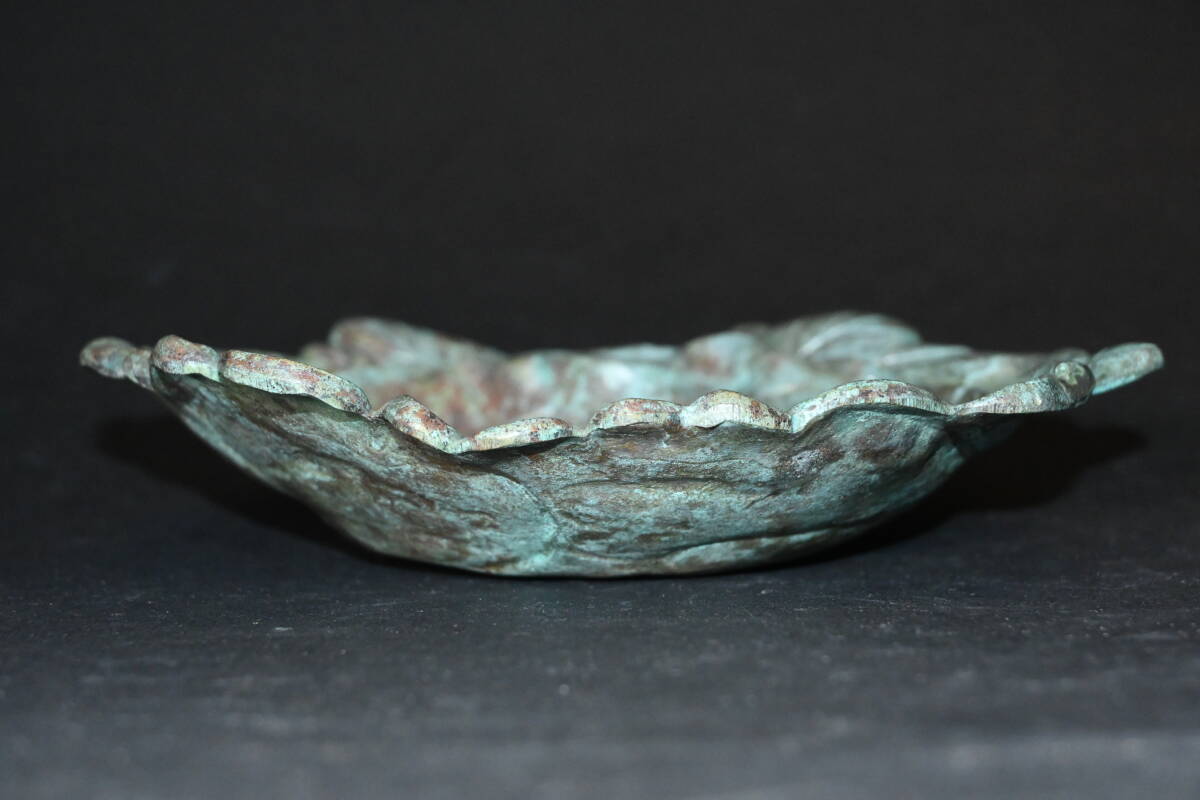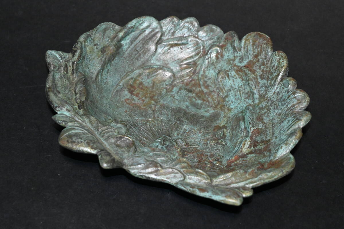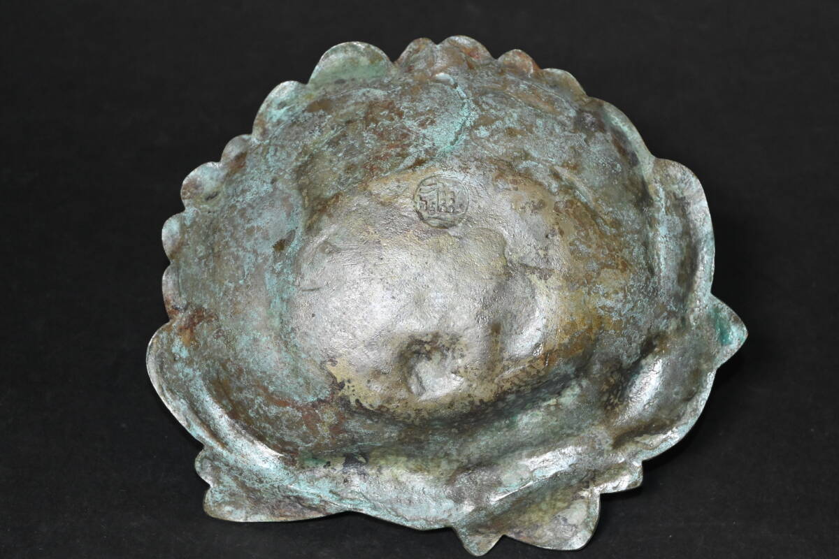 ブロンズ 牡丹形 トレイ 小物入れ 飾皿 灰皿 灰器 時代 彫刻 在銘 箱無 詳細不明 アンティーク 花モチーフ 置物 オブジェ | |||