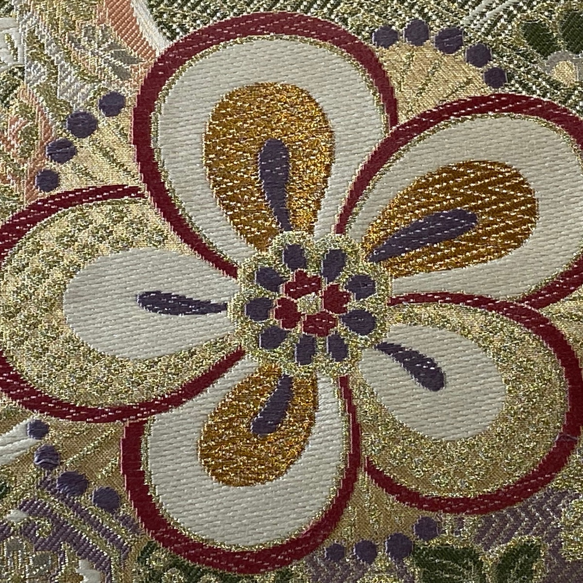 | 袋帯 美品 秀品 梅 菊 金糸 刺繍 金色 六通 正絹 【中古】 |