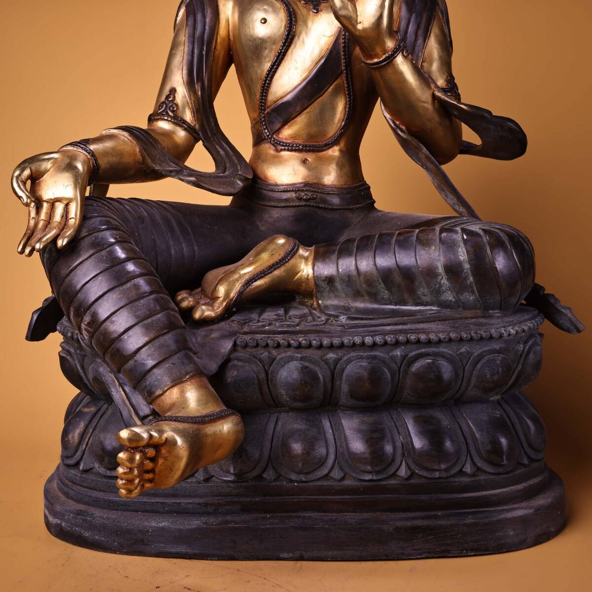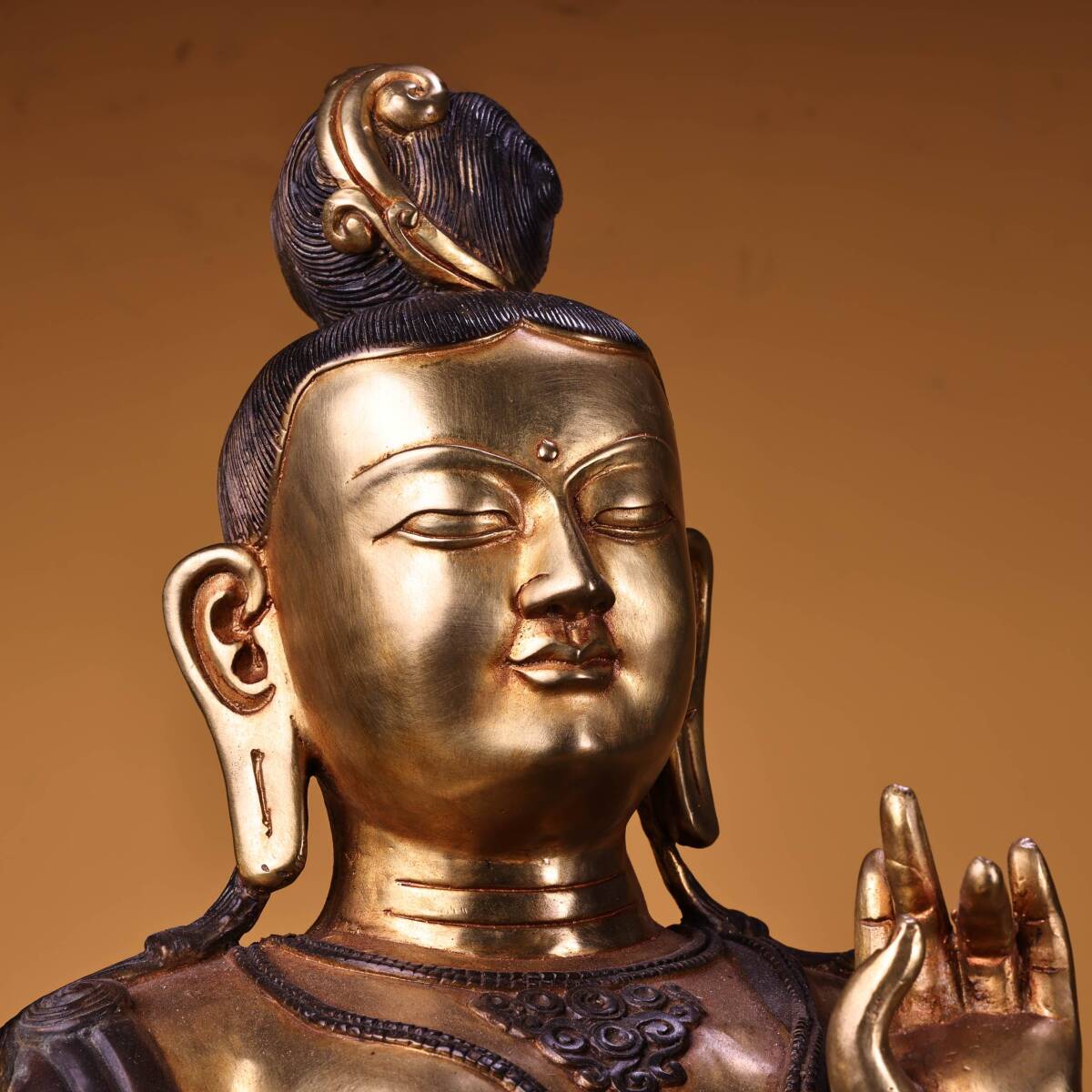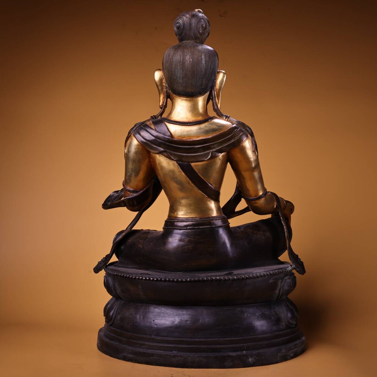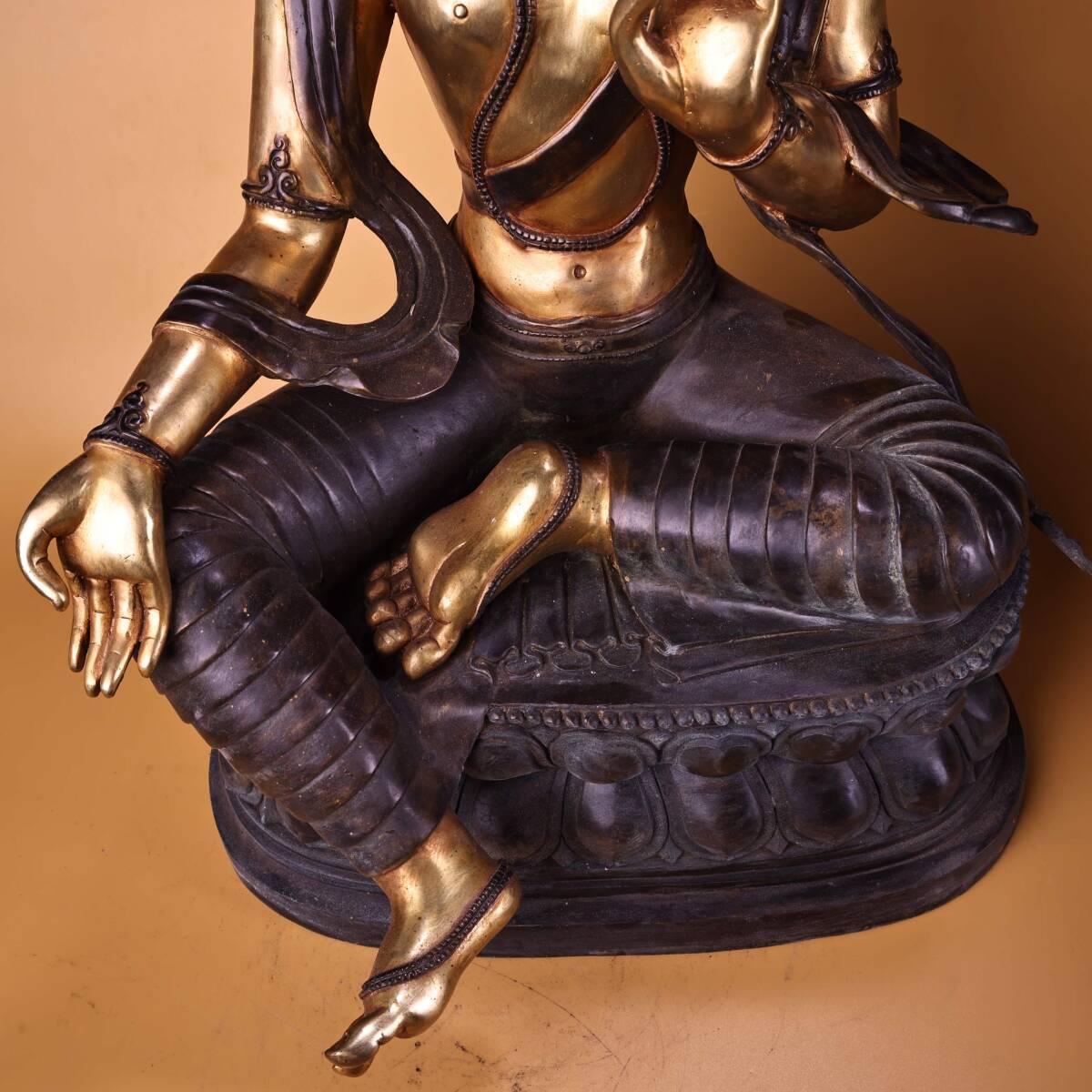*珍品旧蔵* 清 純銅 全銅 高浮彫鏨刻 塗金綠度母 仏像 奉納されていた 供養品 銅製 極細工 中国古玩 骨董品 古美味 H48
