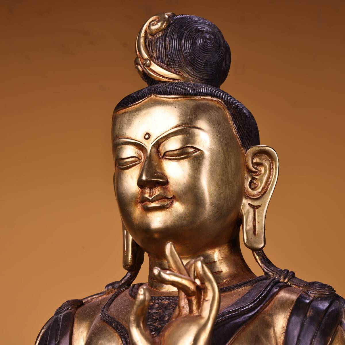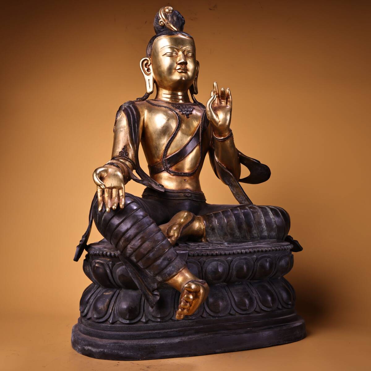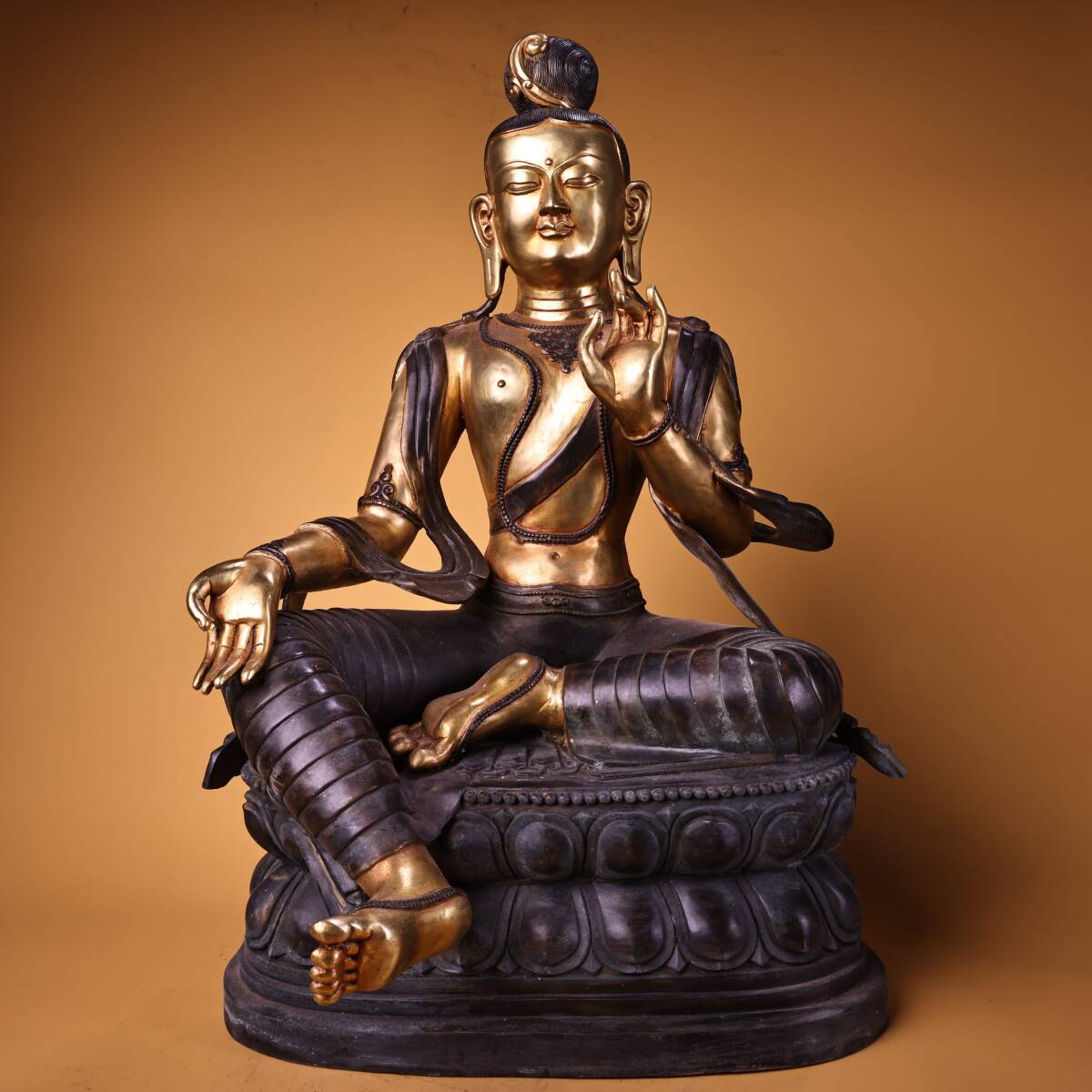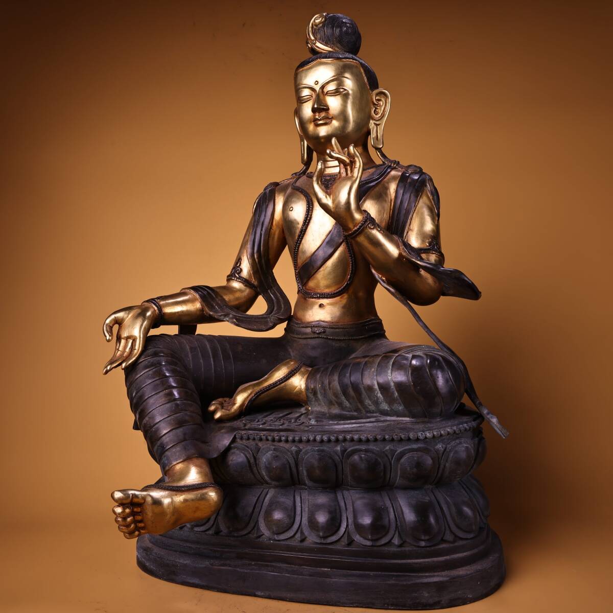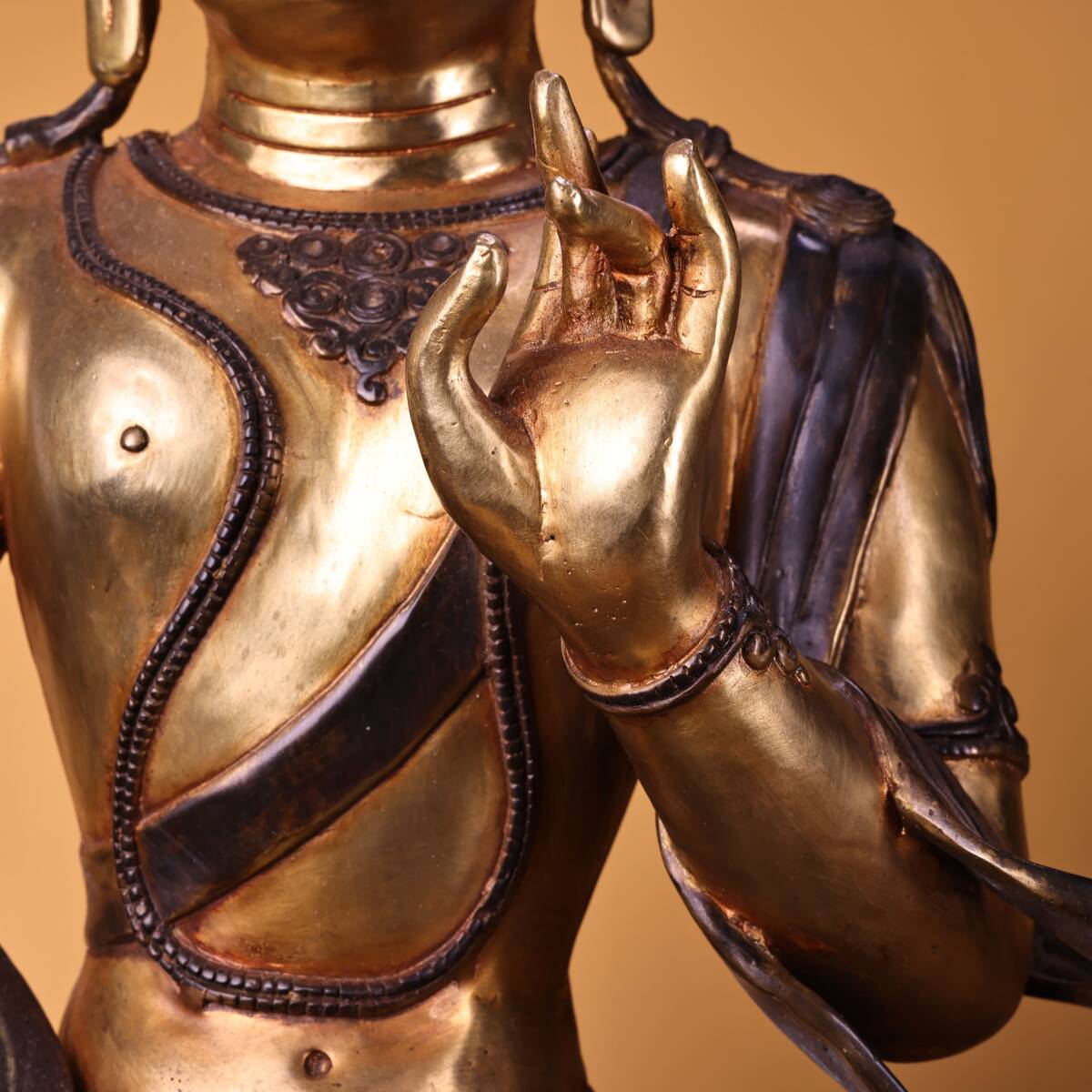 *珍品旧蔵* 清 純銅 全銅 高浮彫鏨刻 塗金綠度母 仏像 奉納されていた 供養品 銅製 極細工 中国古玩 骨董品 古美味 H48