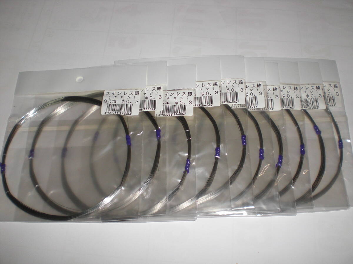 ■  ステンレスカットワイヤー線(ナマシ)(線径Φ0.3mm) 全長30m×10枚 太刀魚等のハリスに