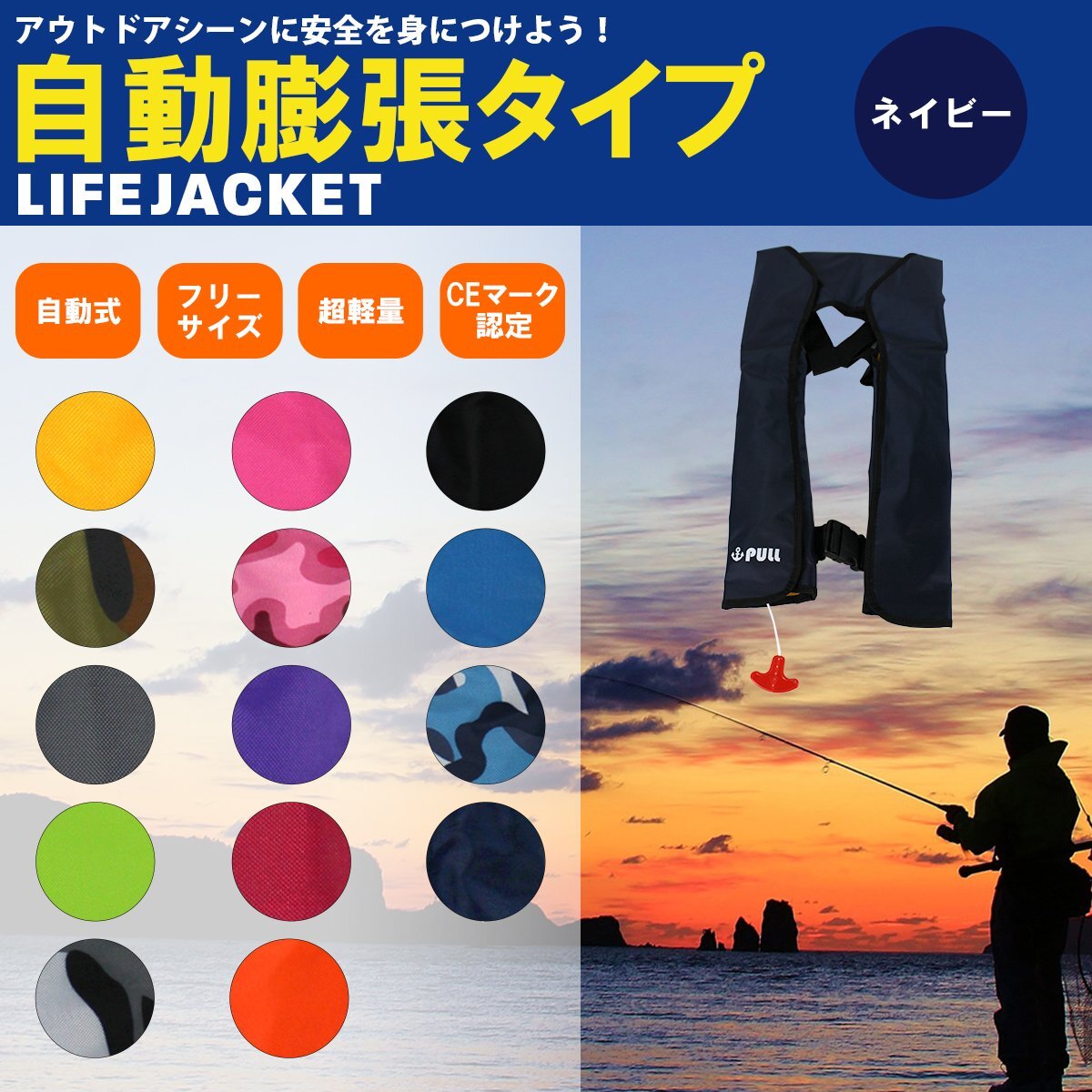 【新品即納】大人気!オリジナル ライフジャケット 自動膨張式 肩掛け ベストタイプ ネイビー/紺※男女兼用!フリーサイズ 釣り ボート