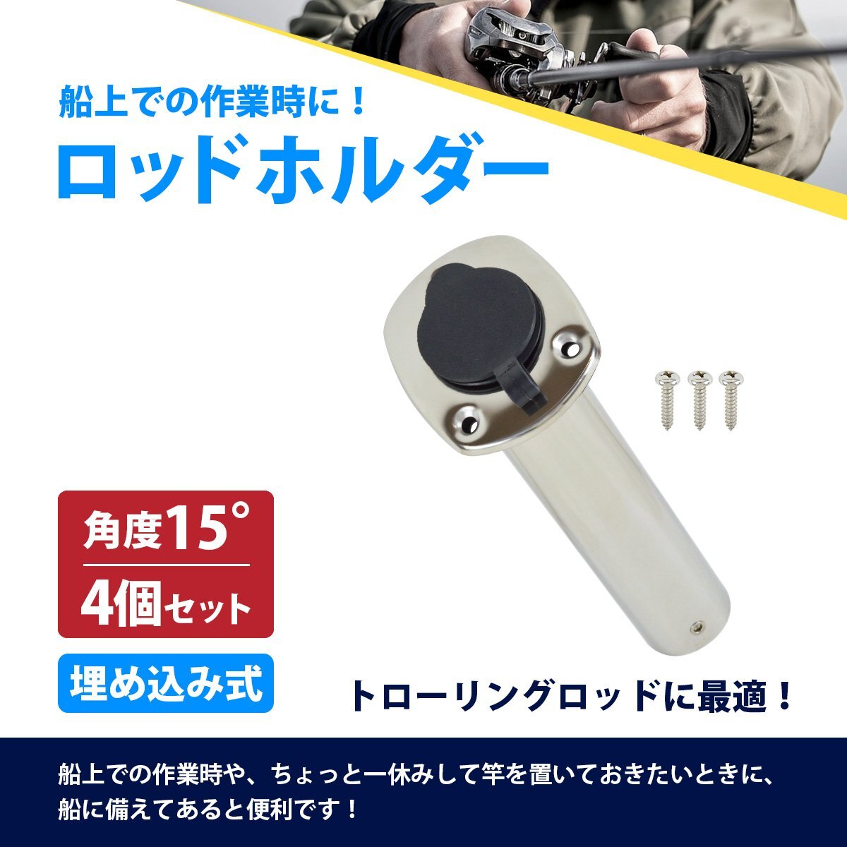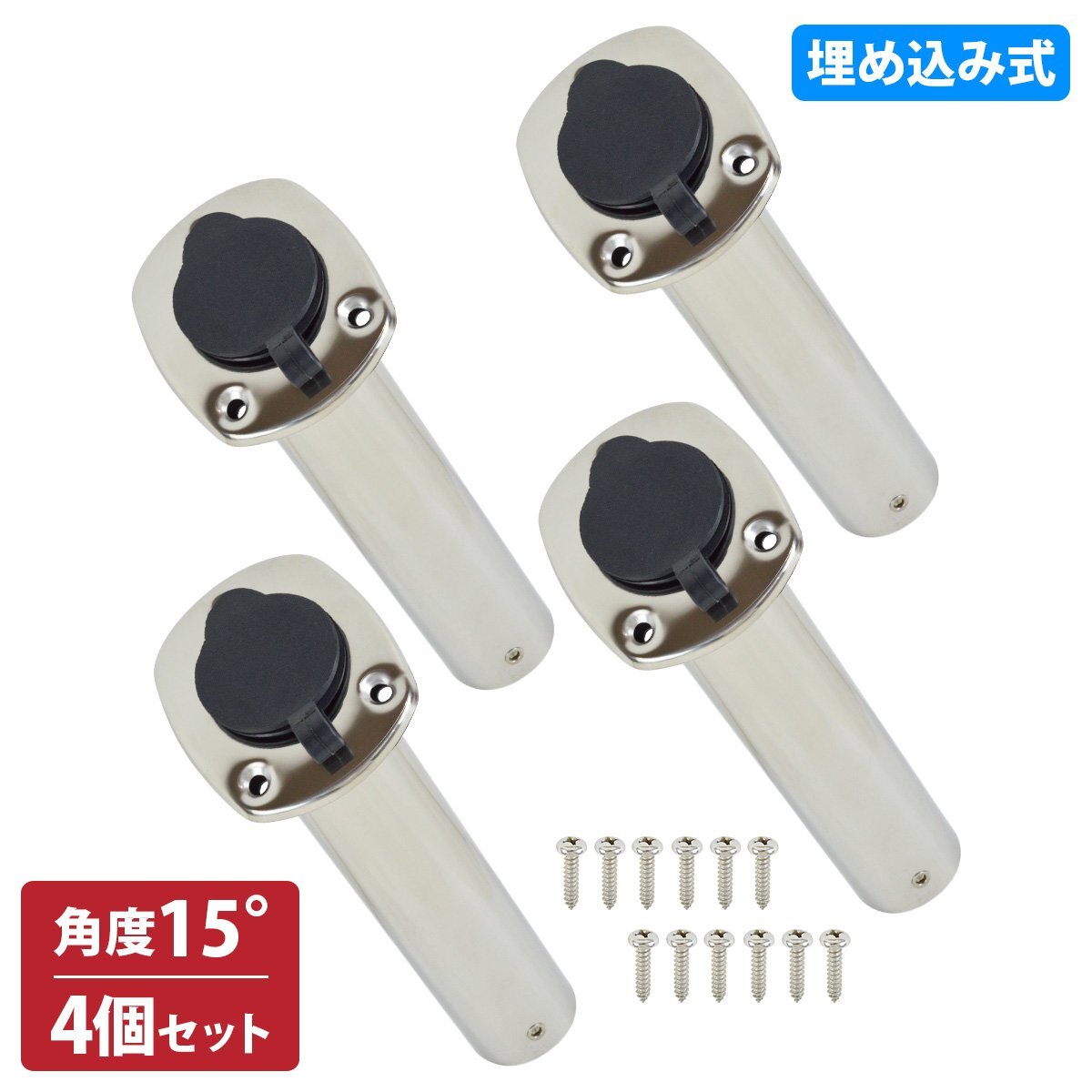 【新品即納】4個 セット 15度 埋め込み ステンレス製 ロッド ホルダー スタンド 釣り 竿 置き 受け 船 ボート 海 フィッシング 遊漁船