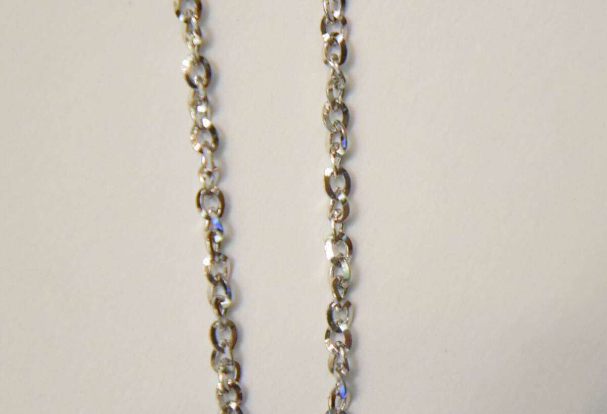 シンプルなアズキチェーン似たデザインですがヒネリを加えたパーツを使ったネックレスチェーンです。