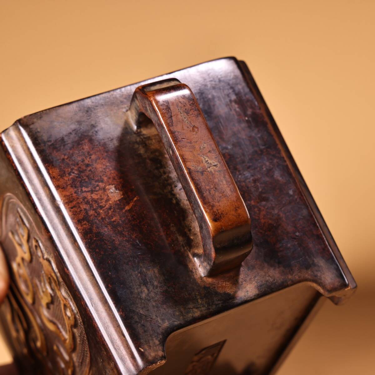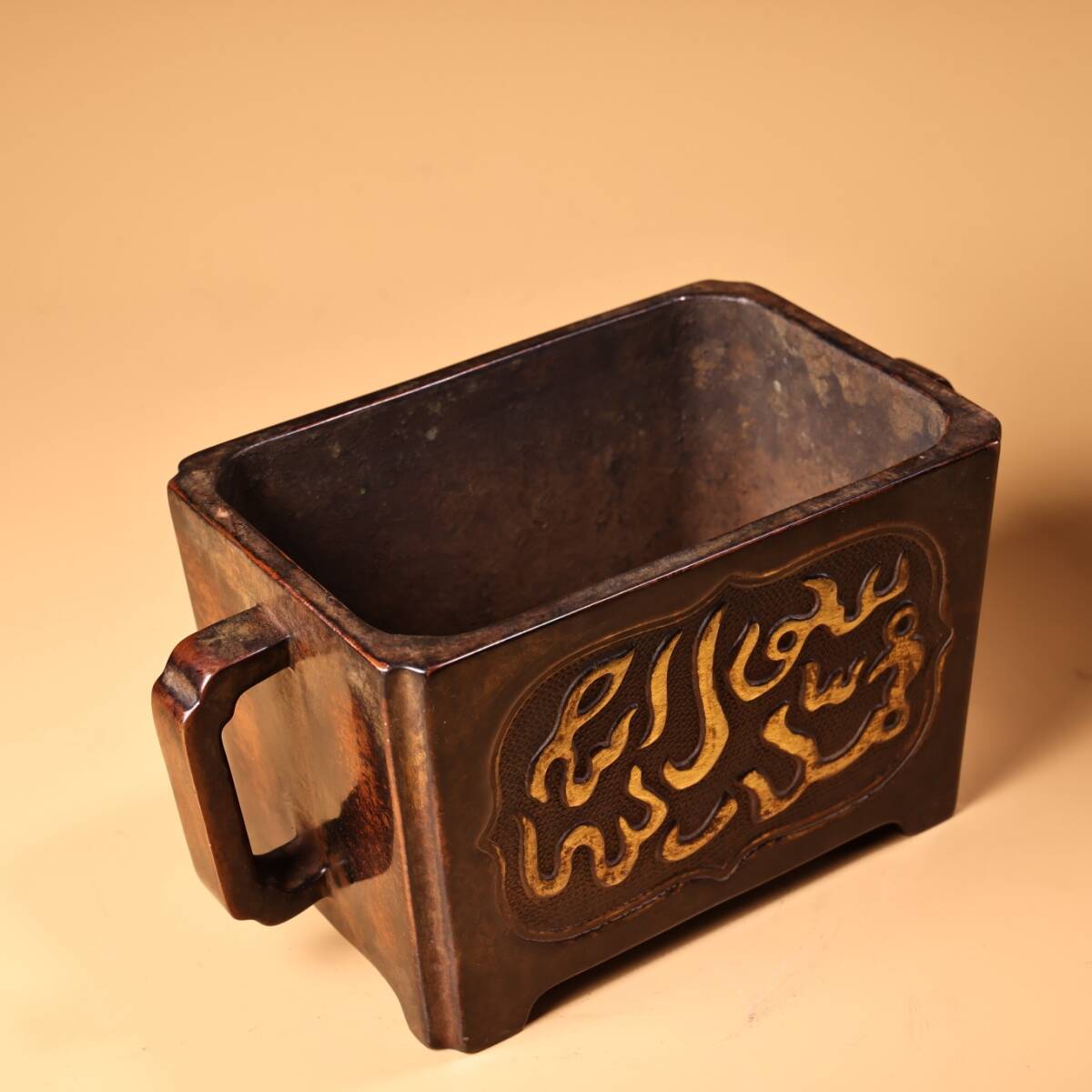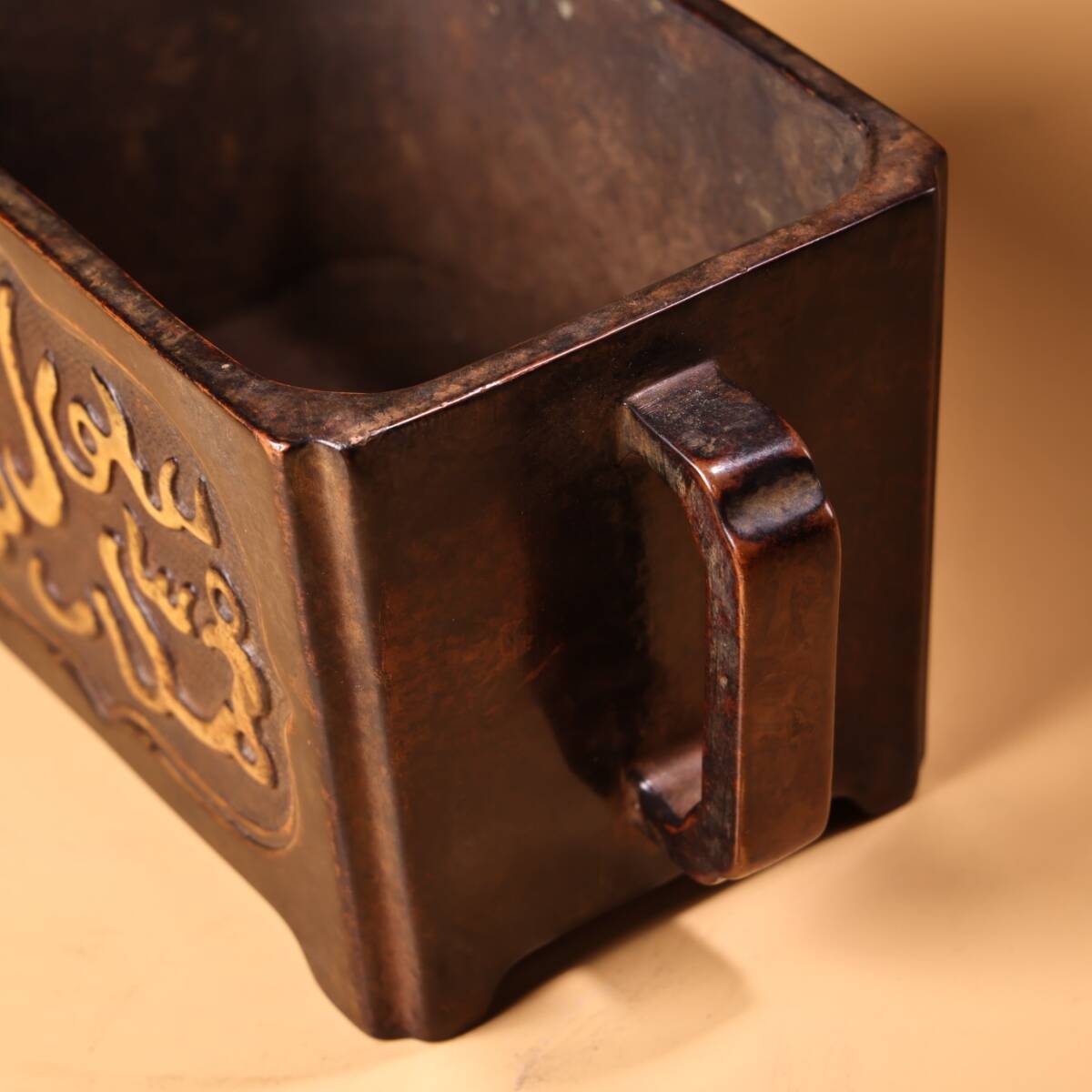 唐物 大明 宣德年制 純紫銅 純手工高浮彫鏨刻 塗金回文香爐 香道具 銅製品 銅器 極細工 古美術品 時代物 中国古玩 骨董品 D68