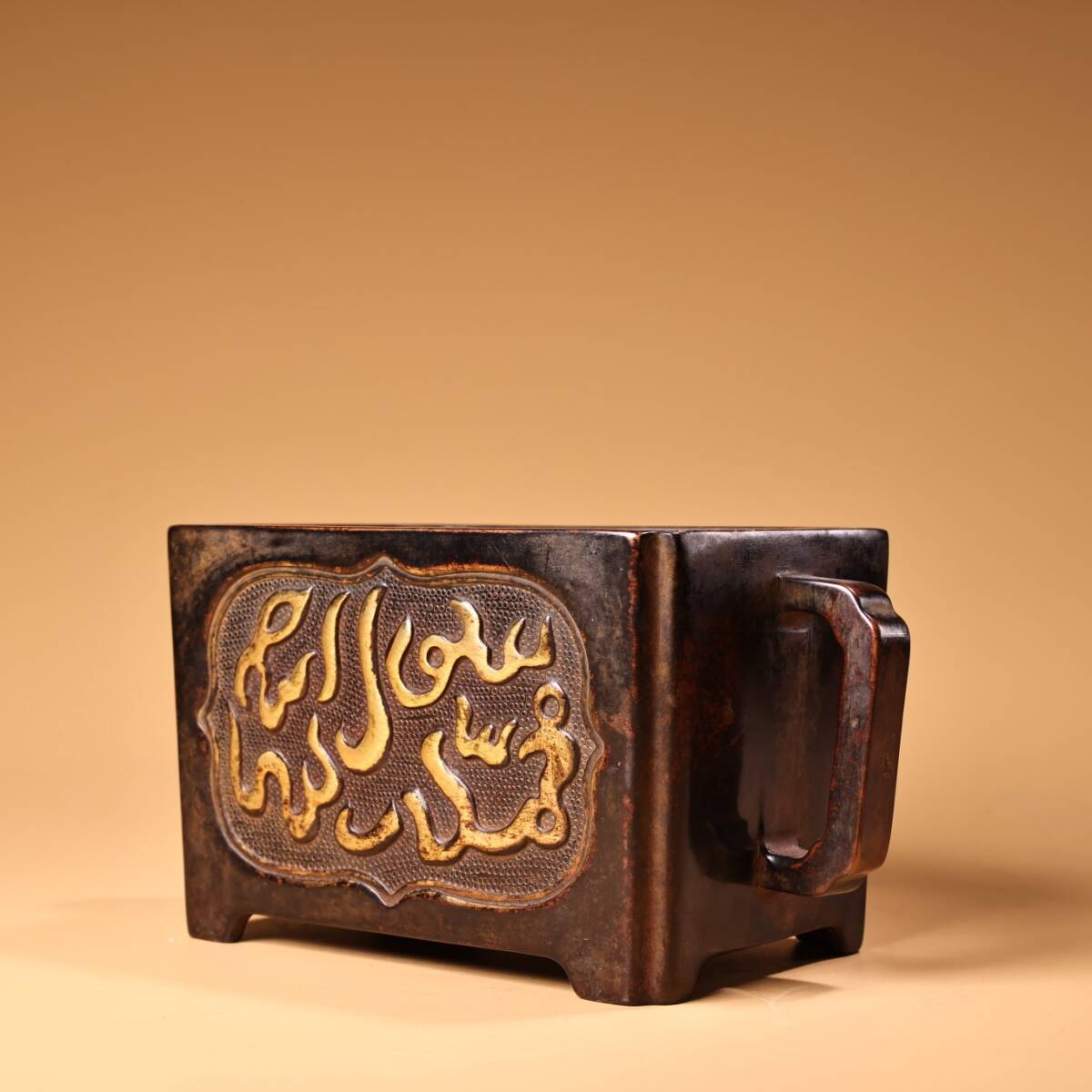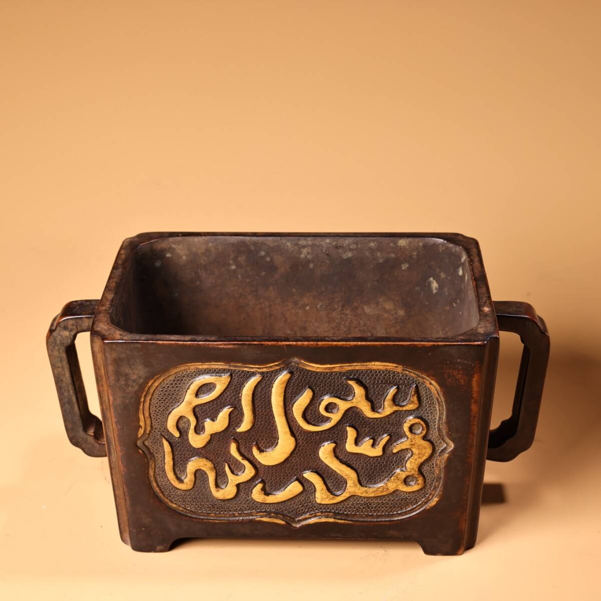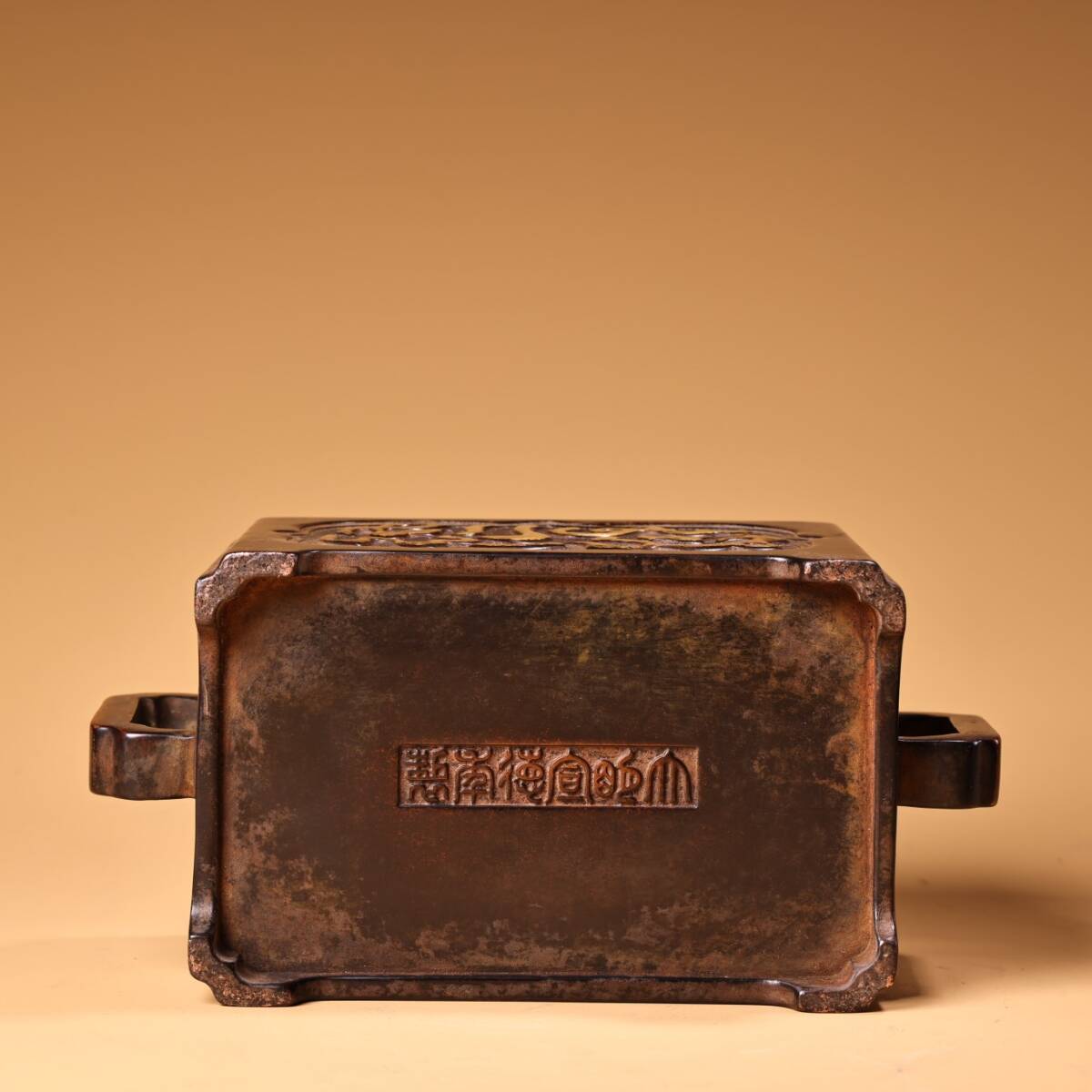 唐物 大明 宣德年制 純紫銅 純手工高浮彫鏨刻 塗金回文香爐 香道具 銅製品 銅器 極細工 古美術品 時代物 中国古玩 骨董品 D68