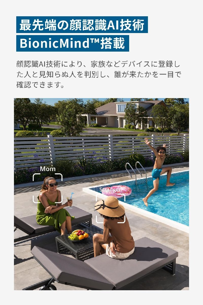 ブランド:Eufy(ユーフィ)カラー:Clear最先端の顔認識AI技術BionicMind搭載:顔認識AI技術により、家族などデバイスに登録した人と見知らぬ人を判別し、誰が来たかを一目で確認できます。※顔認識はクラウドでなく、HomeBaseS380で処理されます。顔認識機能を使用するには、動作検知設定の検知対象に「人物(顔認識)」を有効にしてください。