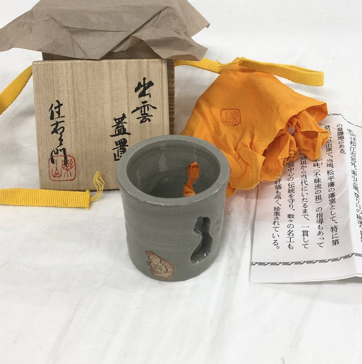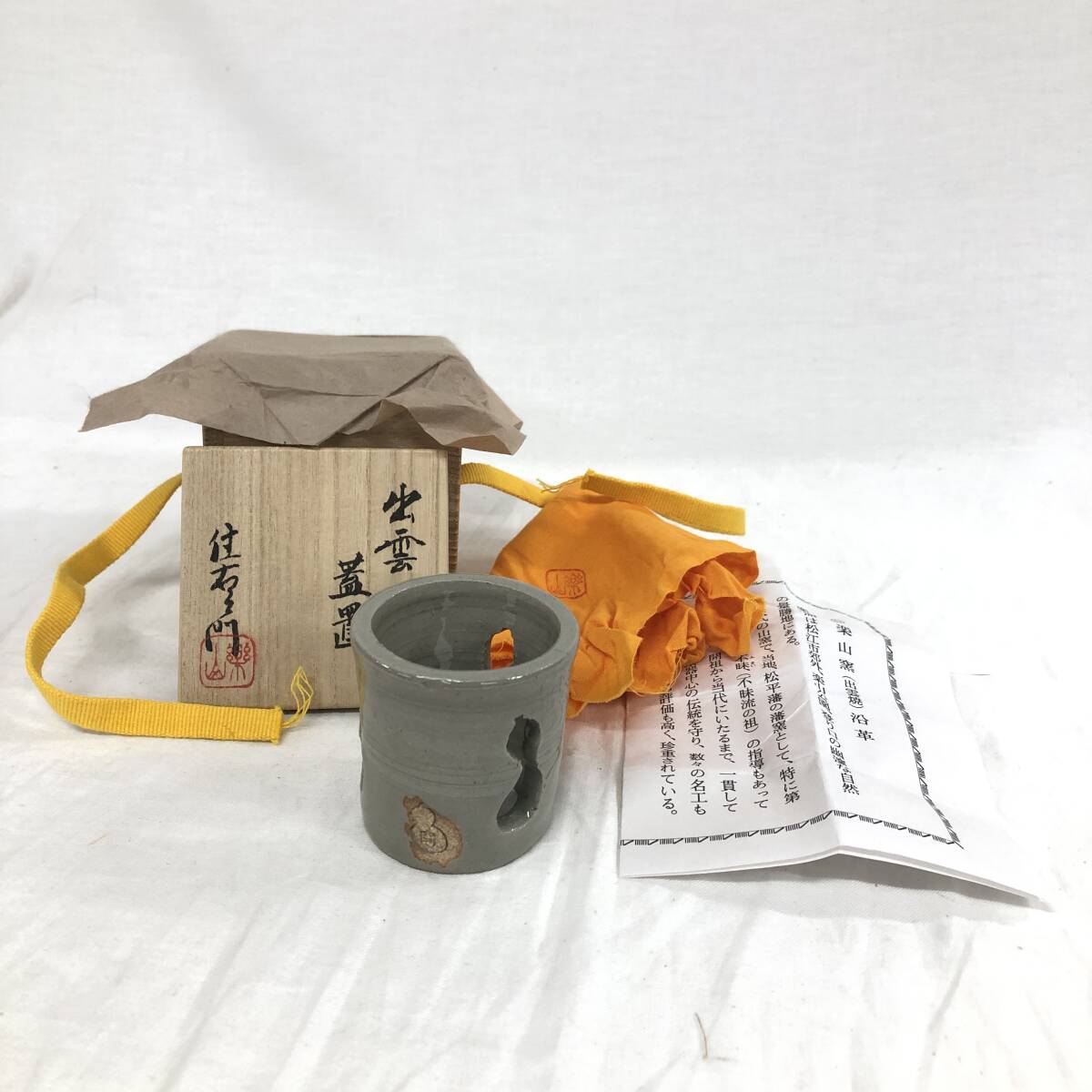 | 楽山焼 出雲蓋置 長岡住右衛門 出雲焼 ★共箱付き 島根 茶道具 骨董品 蓋置 陶芸品 空権 |