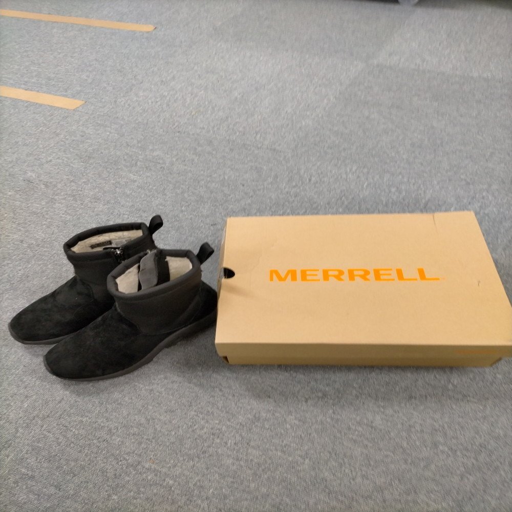 For : MERRELLのシックなブラックアンクルブーツです。様々なスタイルに合わせやすいシンプルなデザインで、カジュアルからきれいめまで幅広く活躍。やや傷や汚れはございますが、まだまだ普段使いにご着用いただけます。