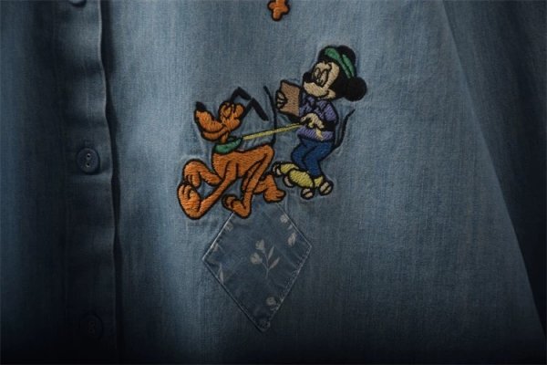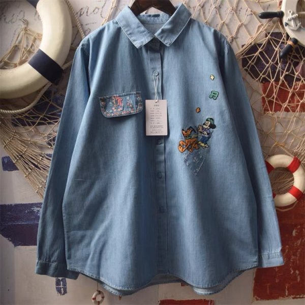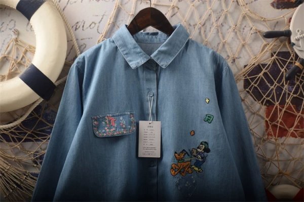 rm 2508 ブラウス フリーサイズ ワイシャツ チュニック トップス 綿100% 大人可愛 ナチュラル サラサラ 通気性肌触り抜群 刺花柄 デニム2