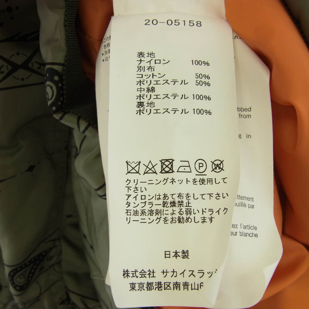 | 商品名 | Sacai サカイ 20-05158 Dr. Woo Bandana Print Blouson ドクターウー バンダナ プリント ブルゾン カーキ系 2【中古】 |