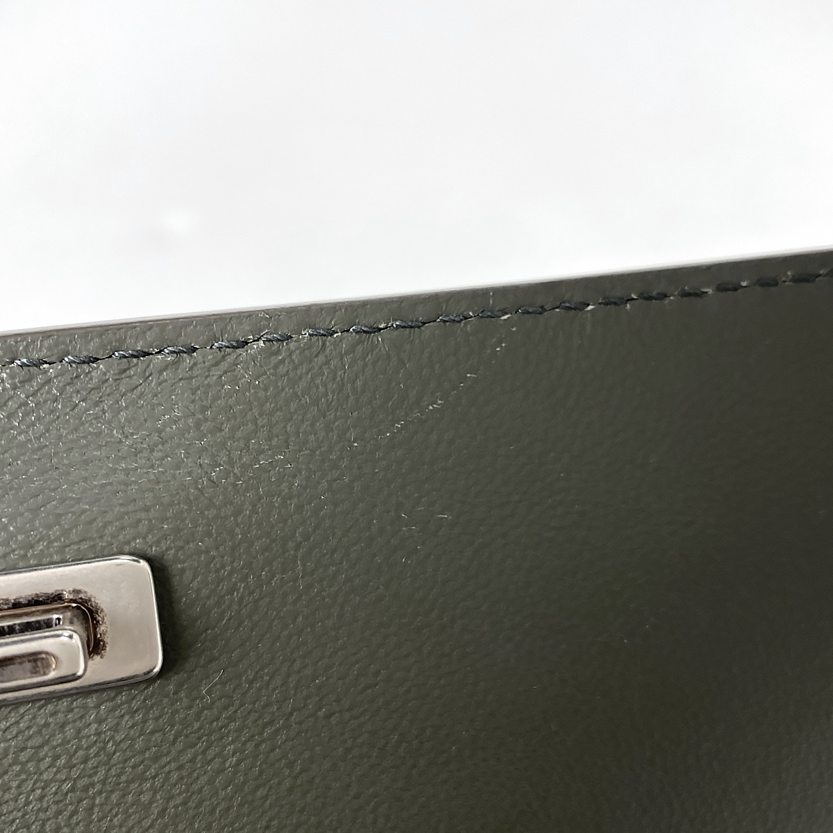 | 《全体》型崩れ、生活臭、スレ、キズ、シワ、汚れ 《内側》押し跡 《ショルダーストラップ》へたれ、押し跡 《金具》小キズ、くすみ、黒ずみ 《フラップ根元》ひび割れ 保存袋に劣化あり。 |