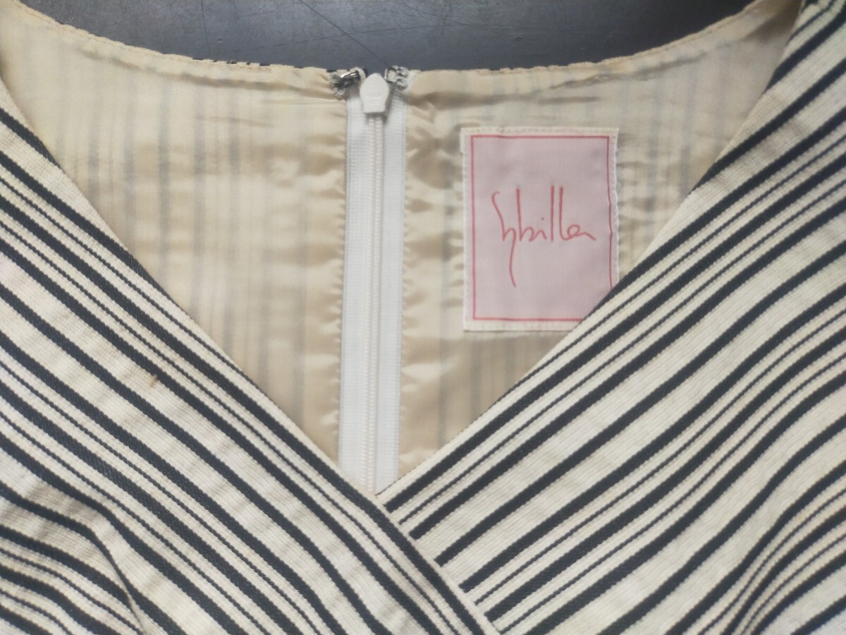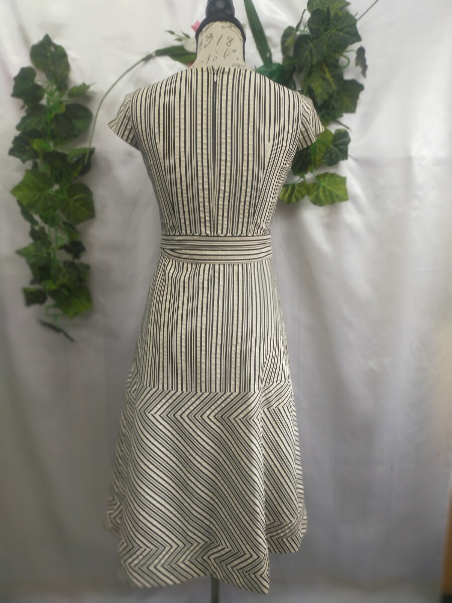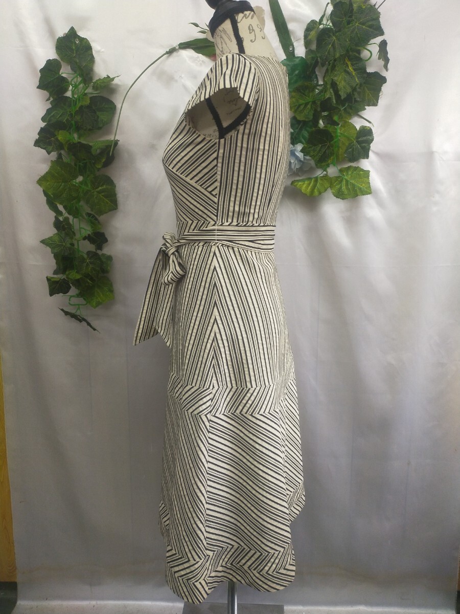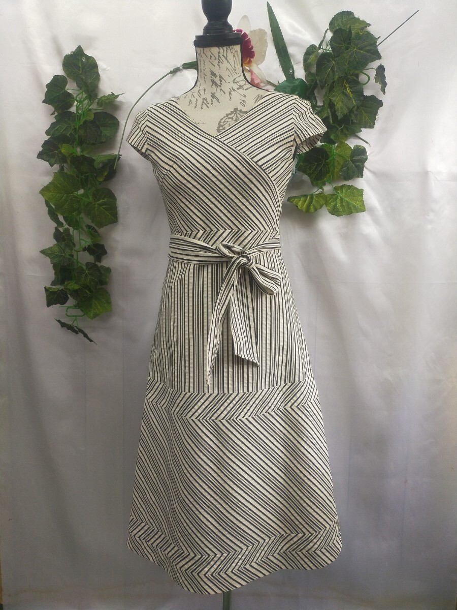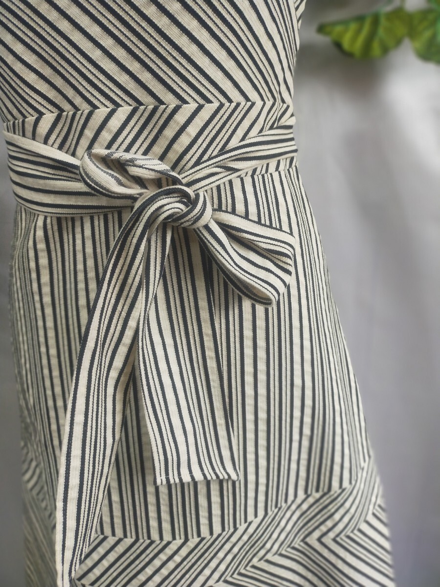 ウエストリボンベルト付きストライプ柄のロングワンピースです。