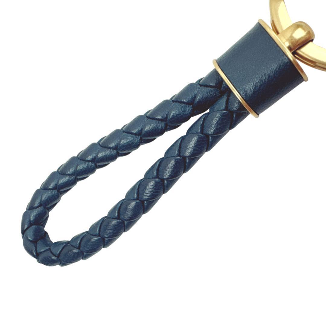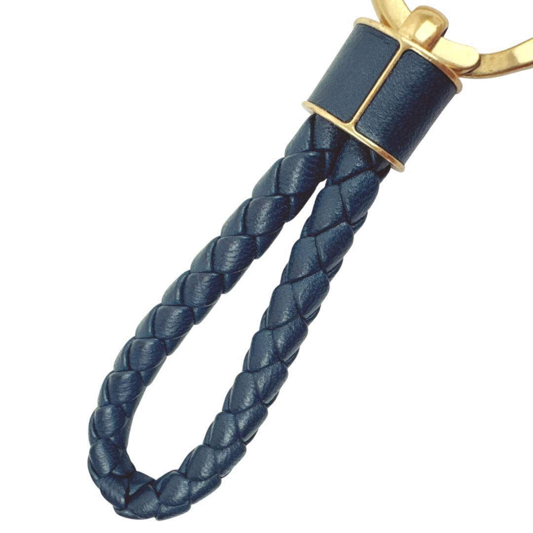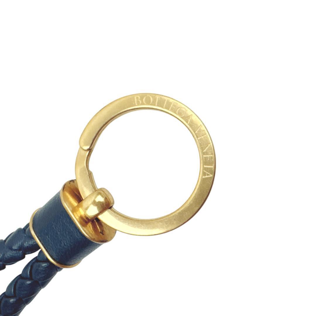 BOTTEGA VENETA ボッテガヴェネタ キーホルダー キーリング イントレチャート ネイビー アンティークゴールド