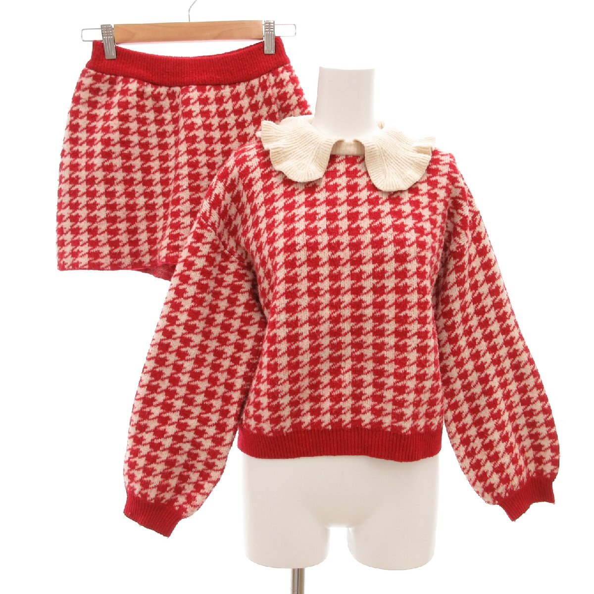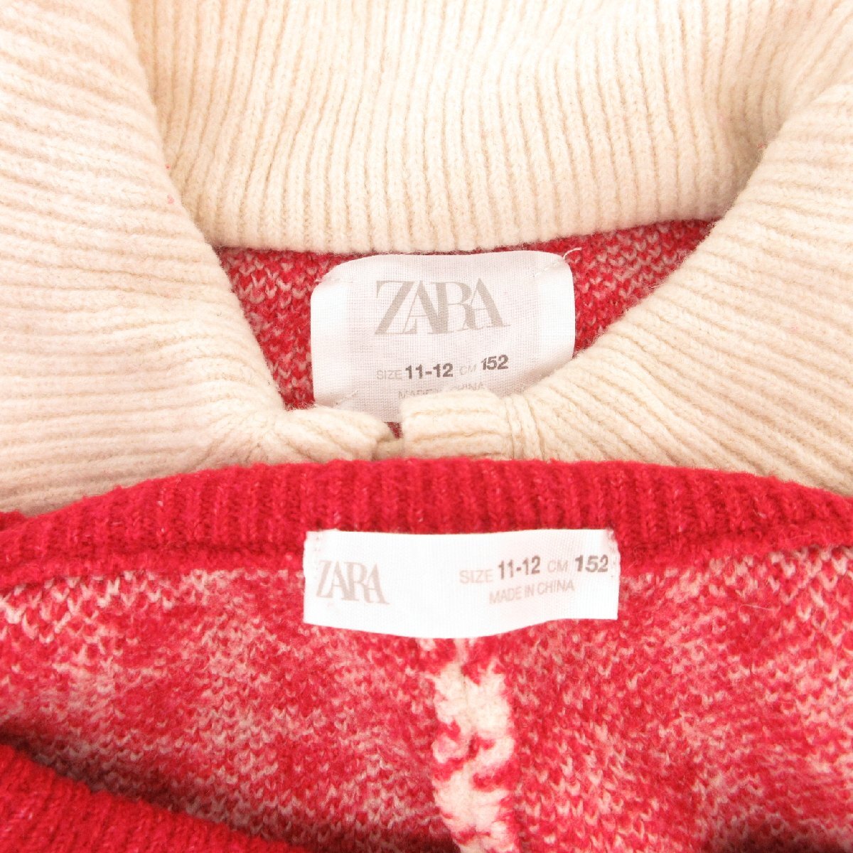 ザラ ZARA セットアップ 襟付きセーター ショートパンツ イージー 長袖 千鳥格子柄 152 赤 レッド 白 ホワイト /GV キッズ