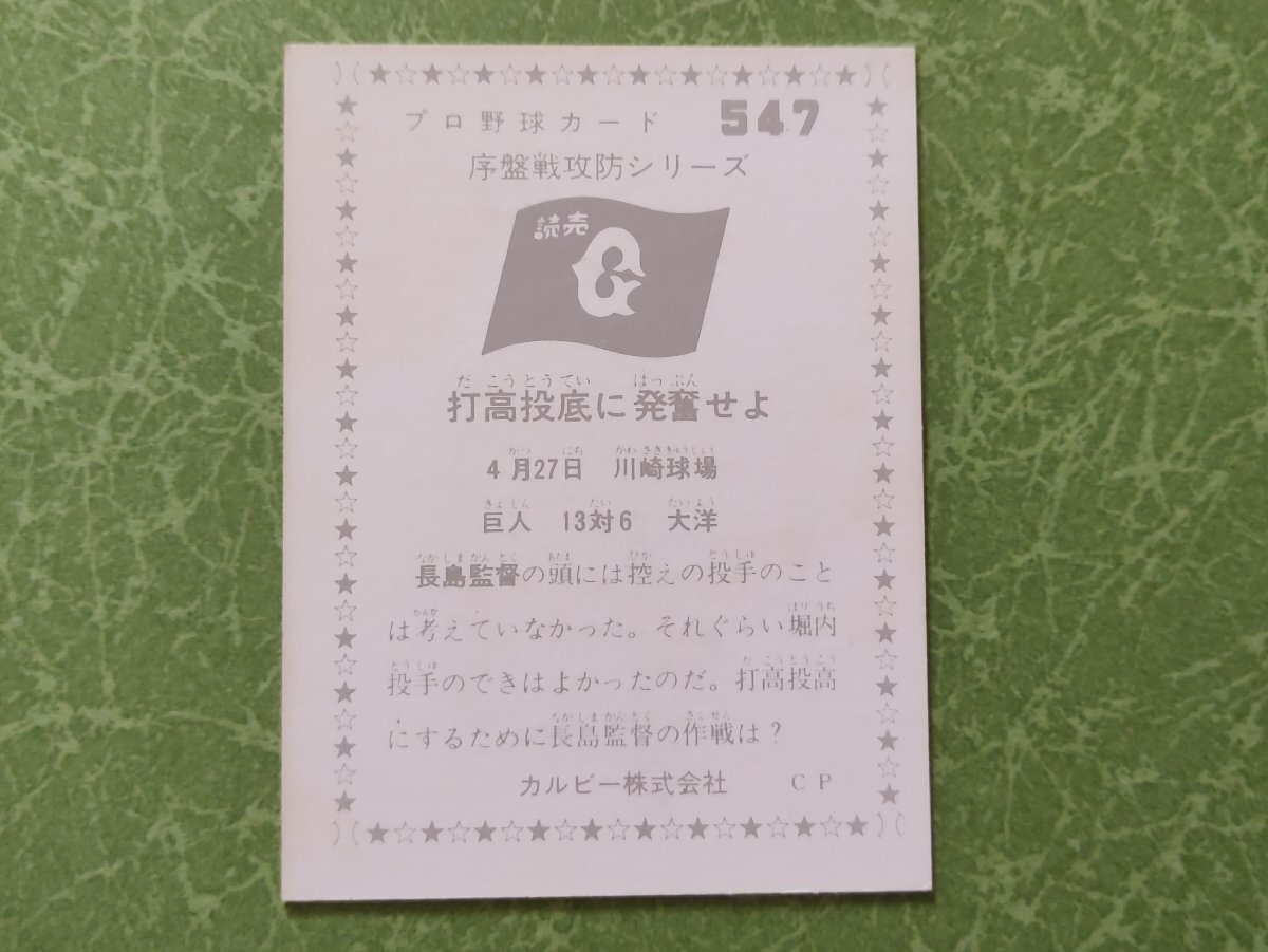 長島茂雄 王貞治 堀内恒夫 杉下茂 矢沢正 読売ジャイアンツ '76プロ野球カード カルビー