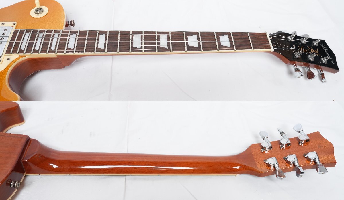 | コストパフォーマンスに優れたレスポールスタンダード Bacchus BLS Live Road Les Paul Gold Topです。 貴重なゴールドトップで飽きのこない王道なレスポールスタンダードです。 マホガニーボディ、ネックを採用し、コストパフォーマンスモデルながらもレスポールならではの重厚感のあるサウンドが得られます。 パワーにも優れ芯のあるサウンドを出力します。入門用としても最適な1本です。 軽量で取り回しも良く演奏性にも優れたレスポールです。 ■■■以下わかる範囲でのスペックです。■■■ ボディ材 : Maple Top/Mahogany ネック : Mahogany 指板 : Rosewood ピックアップ : オリジナル ハムバッカー ×2 重量 :約3.4Kg ナット幅 :約42.9mm シリアルナンバー : - カラー : Gold フレットは主観ですが約7~8部山程度残量があります。 ■商品の状態■ *小傷、弾き傷程度で使用感の少ない綺麗な中古品です。 *ネックはほぼフラットで反りは感じられません。 *動作確認済みです。 ■付属品■ ソフトケース |