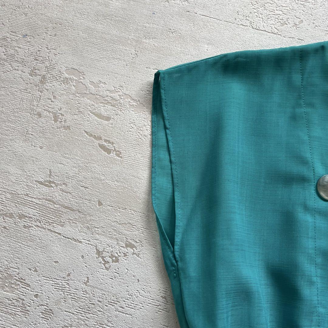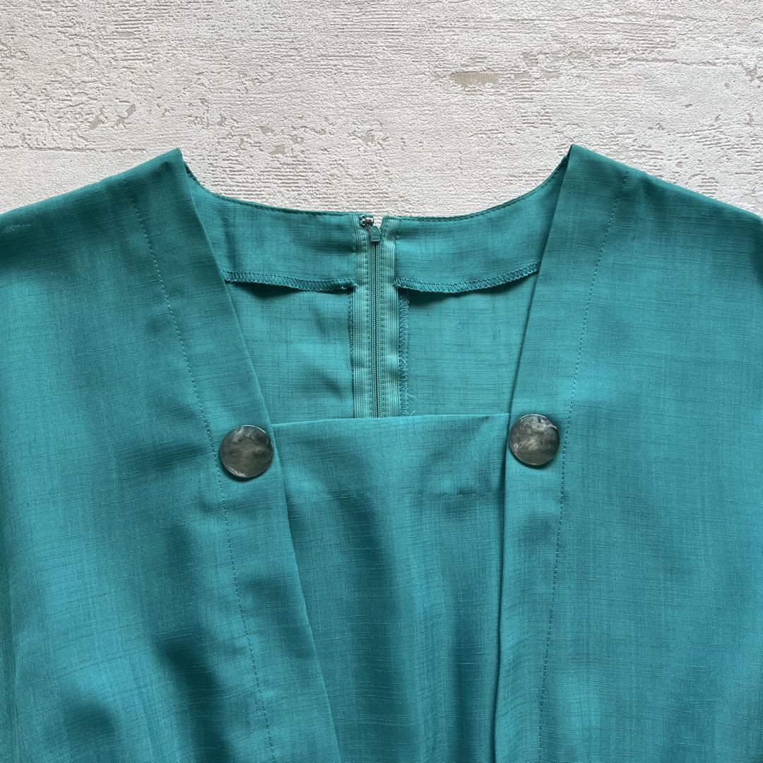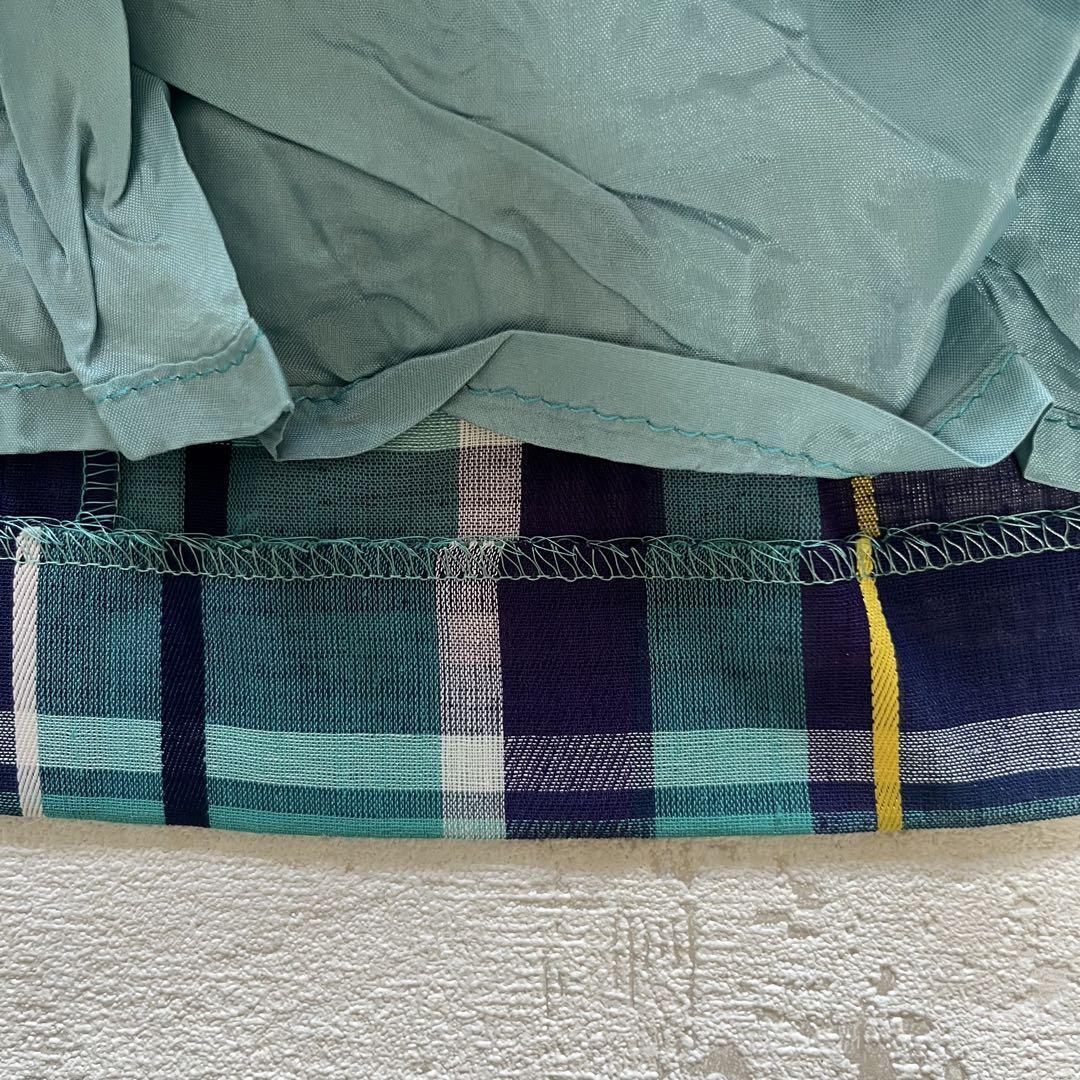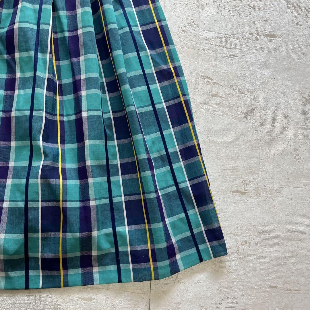 昭和レトロ 配色チェック柄 スカート切替 グリーン ワンピース 半袖 J2