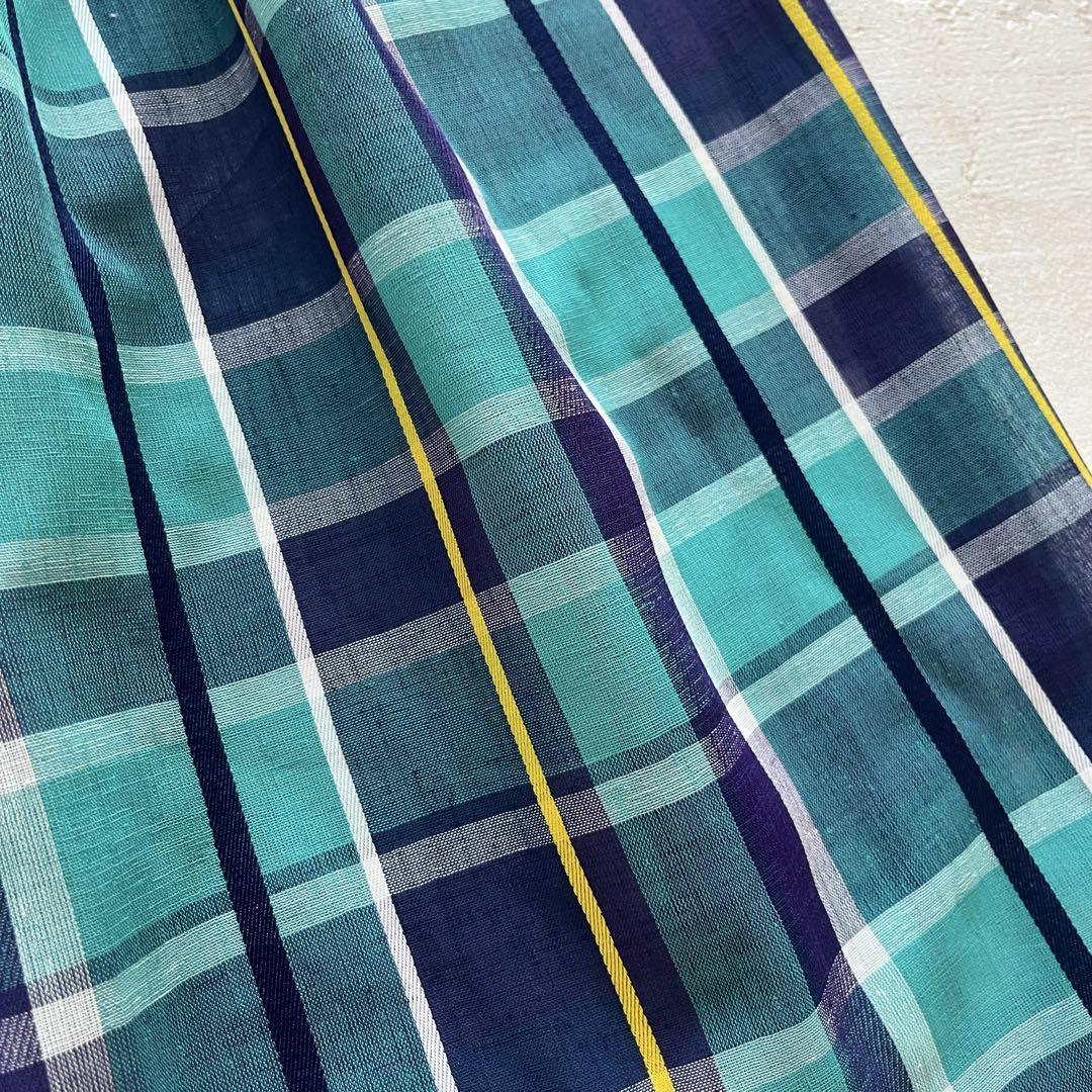 レトロ感あふれるチェック柄のワンピースです。トップス部分は鮮やかなグリーン、スカート部分はブルー×グリーン×ネイビーにイエローをアクセントにしたチェック柄で、目を惹く配色が特徴。ウエストはゴム仕様になっており、リラックス感のある着心地と女性らしいシルエットを両立しています。フロントのボタンデザインもレトロな雰囲気を引き立て、古着好きやヴィンテージファッションを楽しみたい方におすすめ。夏は一枚で、秋はカーディガンを羽織って着回しできるアイテムです。