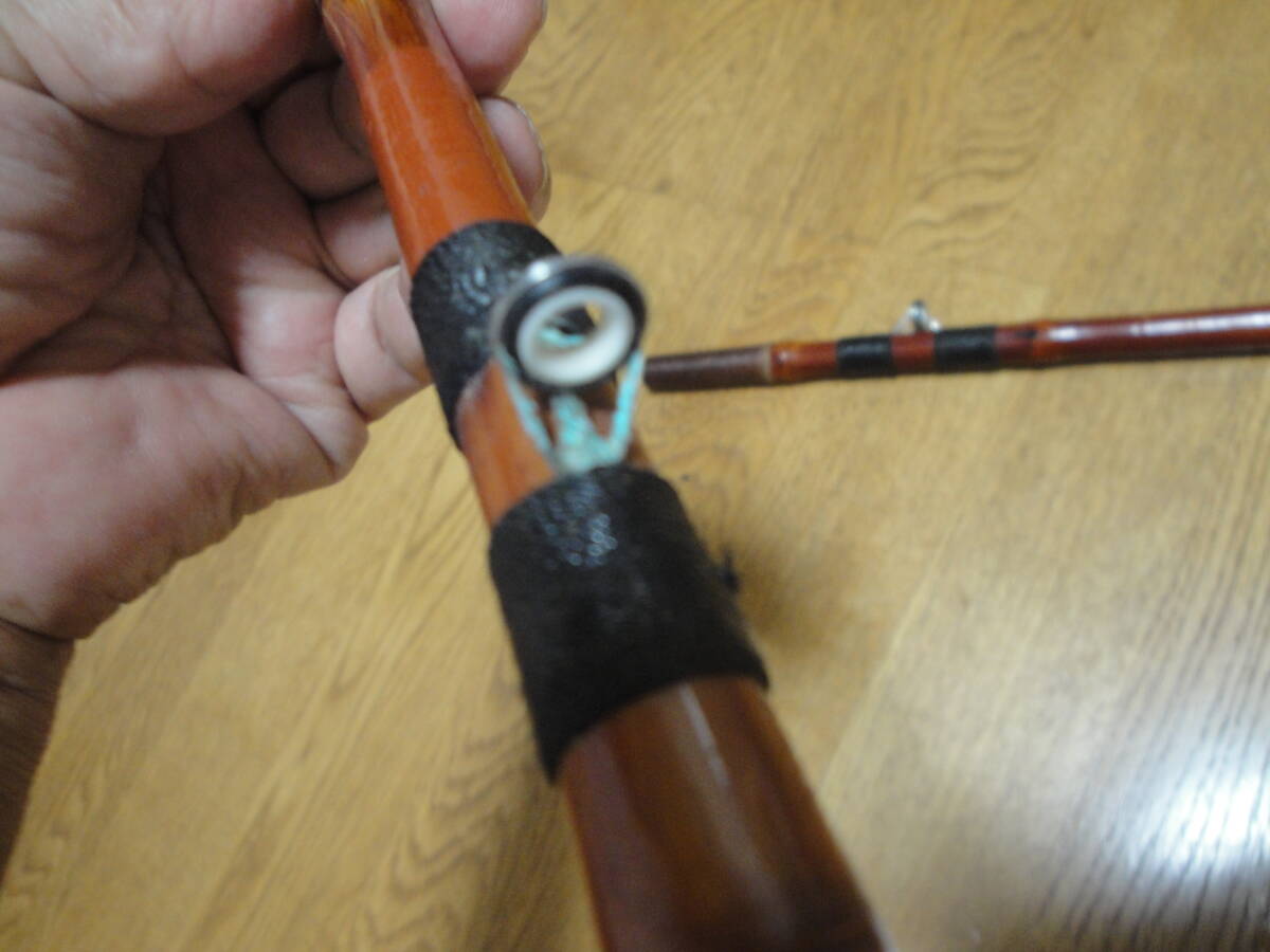 ☆竹竿《船釣り竿(継竿・全長1.86m・継数2)》☆です。1,継竿:継数:2、仕舞寸法:1m、自重:約220g、先径:約2mm、取っ手部径:最大約2.8cm、全長約1.86m(実測値)、無名。写真7・8のように穂先ガイドを含め固定ガイド6個は交換していると思われます。写真9のように固定ガイド部に腐食があります。塗装の剥離・固定糸の傷み等があります。写真で判断願います。あくまでも中古品ですので,新品同様なものをお求めの方・気になさる方のご入札はご遠慮願います。ノークレーム、ノーリターンでお願いいたします。 送料はゆうパック120サイズの料金です。発送は原則週2回です。お手数をおかけしますがご入札の前に、必ずフォローリスト(自己紹介欄)と当該記載内容のご確認をお願いいたします(2日以上連絡がつかないときも,お手数をおかけしますがフォローリスト(自己紹介欄)をご覧の上ご連絡をお願いいたします)。中古品でございますのでノークレームでお願いいたします。問題発生時の対応につきましては、誠意をもって対応させていただきます。メールをいただければ5日程度の取置き(同梱)はOKですのでぜひご利用ください。落札後7日以上連絡が取れないときは自動的にキャンセルさせていただきます。(注)①迅速に対応するため、“「取引ナビ」:取引メッセージ”でお願いいたします。②ゆうパック(着払いの対応はいたしません)ご利用の場合、請求送料は郵便局への持込み割引を含み一切割引の無い料金とさせていただきます(実際の発送料金とは、120円の差があります)。③状態の判断はあくまでの私見ですのでご理解願います。④評価の悪いが5個以上の方、新規の方は、お取引を確実にしていただける旨ご連絡ください。ご連絡のない場合は削除させていただきます。ご入札後のキャンセルはできませんので十分に注意してご入札に参加願います。⑥領収書の発行はできません 。⑦万一、不良品発生時は、誠に申し訳ありませんが実費(ご落札金額、送料、振込手数料)のみにて対応をさせていただきます。⑧万一、落札品が欠品の場合は、誠に申し訳ありませんが実費(送金額、送料、振込手数料)のみにて対応させていただきます。【必ず自己紹介をお読みください。対応や発送できない期間などご案内しております】