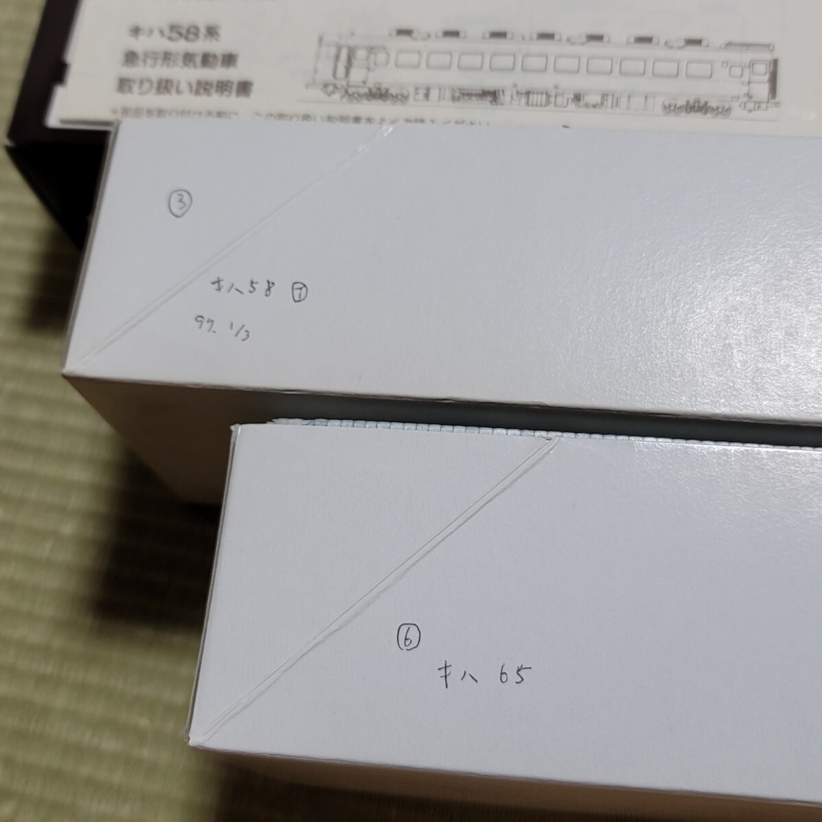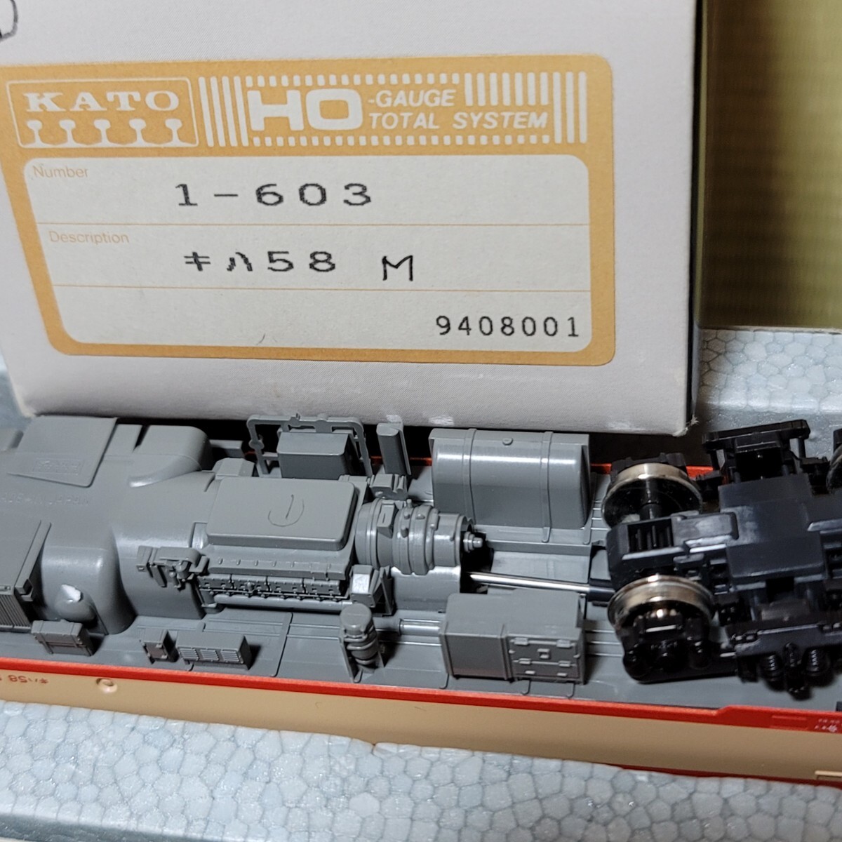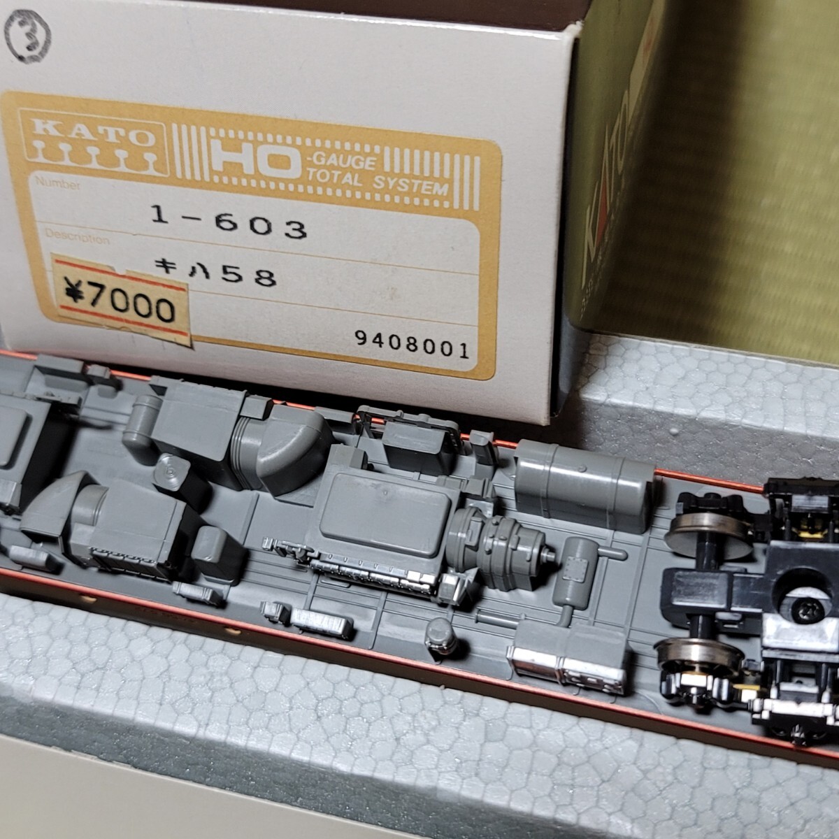 1-603のキハ58ですが、箱に手書きでMと書いており、裏を見ると真ん中に軸の様な物がついているので、改造していると思われます。画像に2台の比較がありますので、ご覧下さいませ。