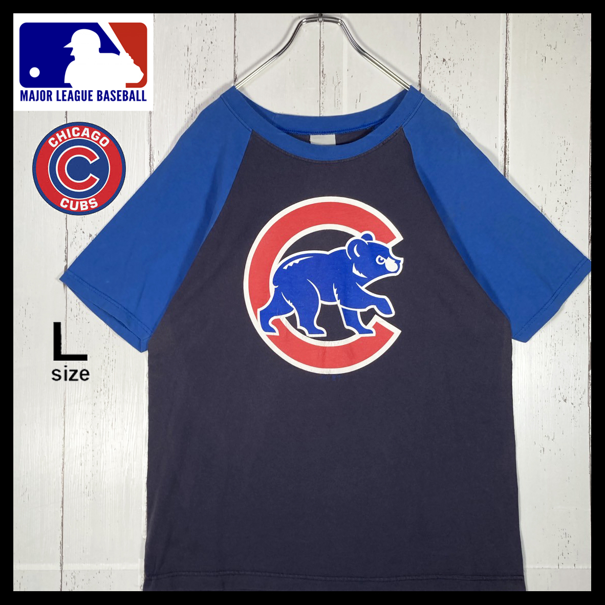 【USED】MLB シカゴカブス CHICAGO CUBS Tシャツ USA 古着 ネイビー ( Lサイズ ) ☆送料無料☆
