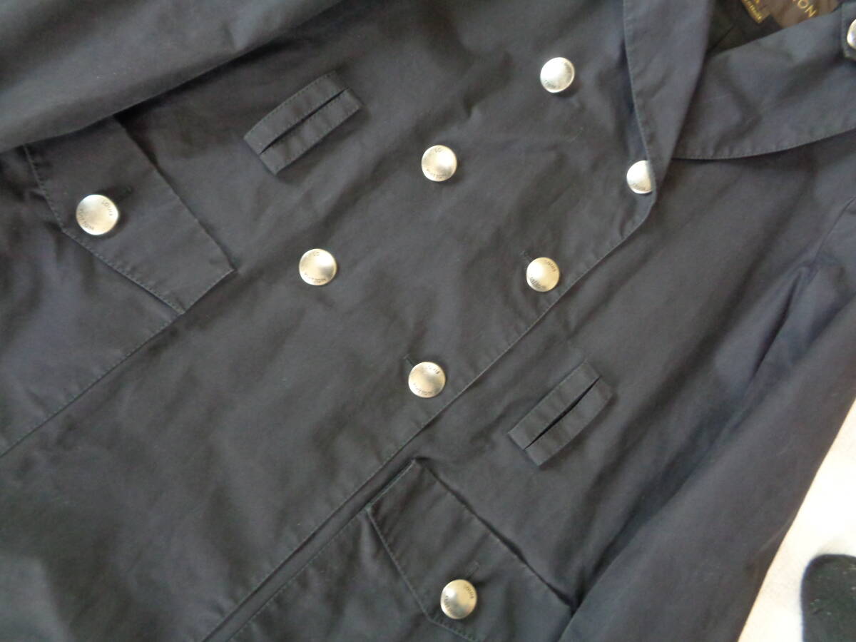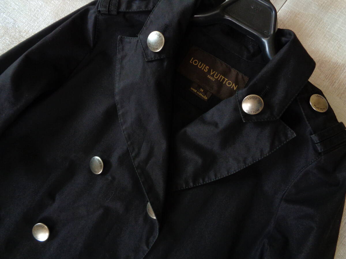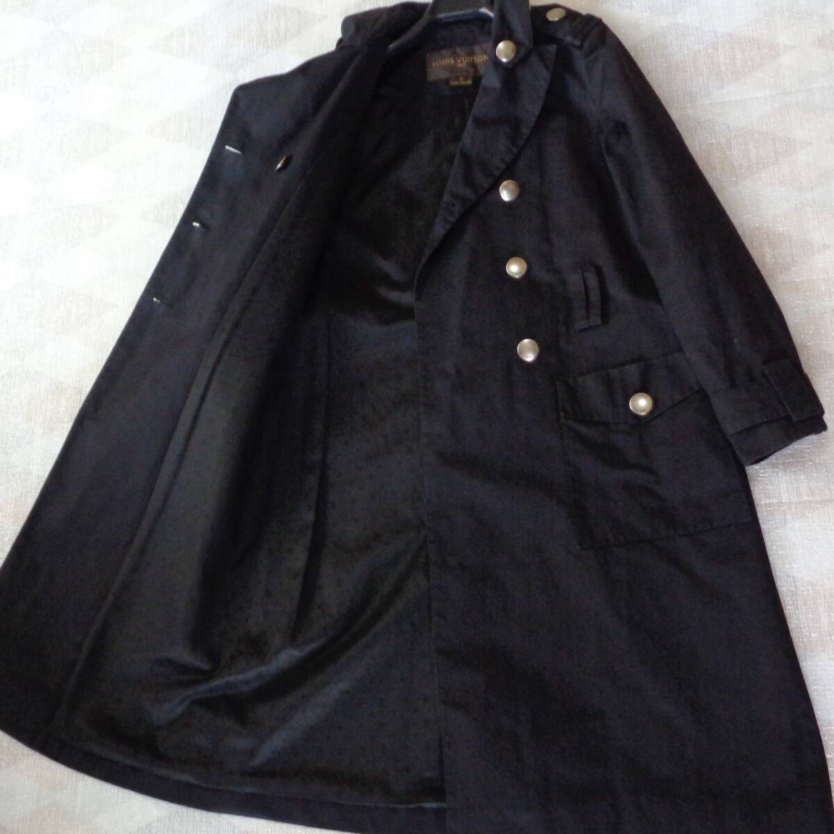 11-f936 ルイヴィトン 裏地モノグラム柄 コート 36 黒色 メタルボタン