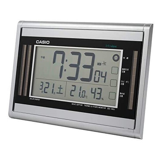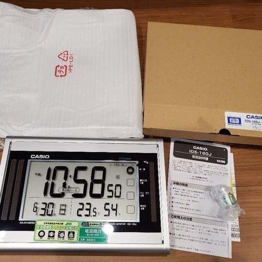 CASIO(カシオ) 置き時計 置き掛け兼用 デジタル 電波 新品 ソーラー 温度 生活環境 カレンダー シルバー IDS-160J-8JF 未使用品 湿度