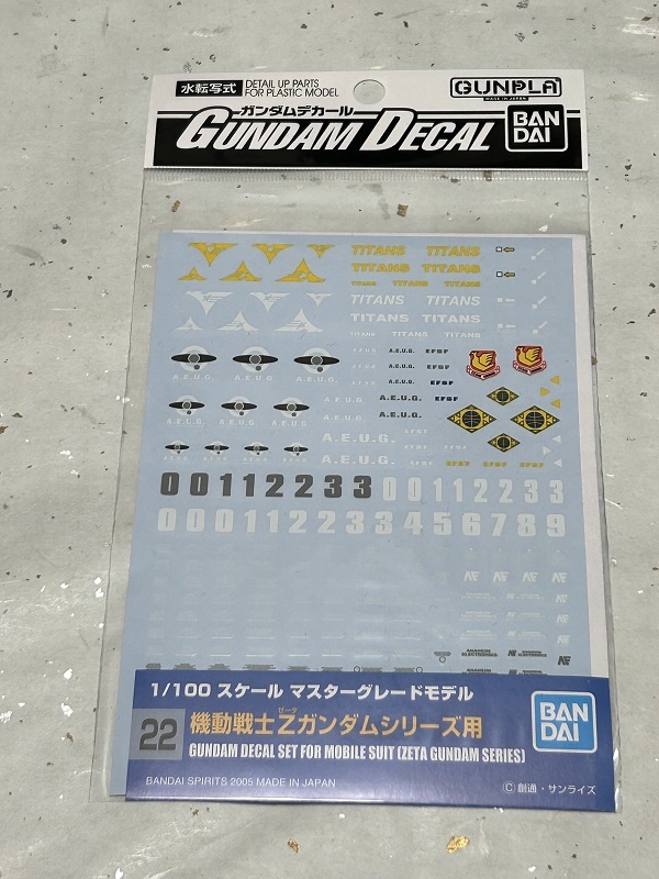 ガンダムデカール22 MG  1/100  機動戦士Zガンダムシリーズ ゼータガンダム