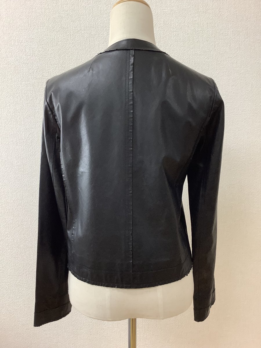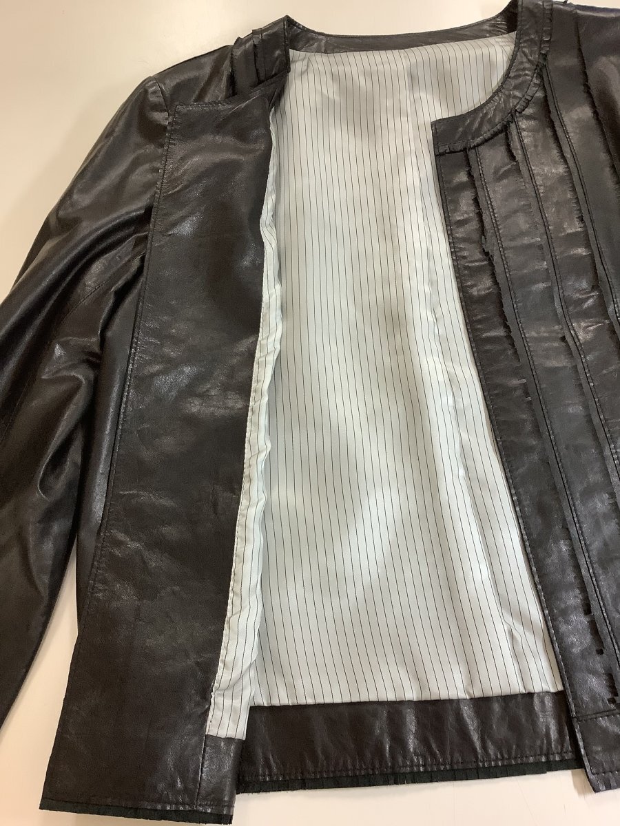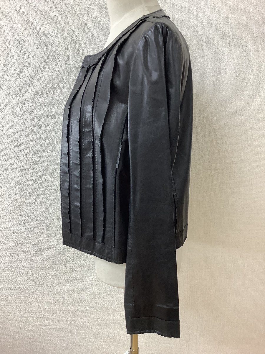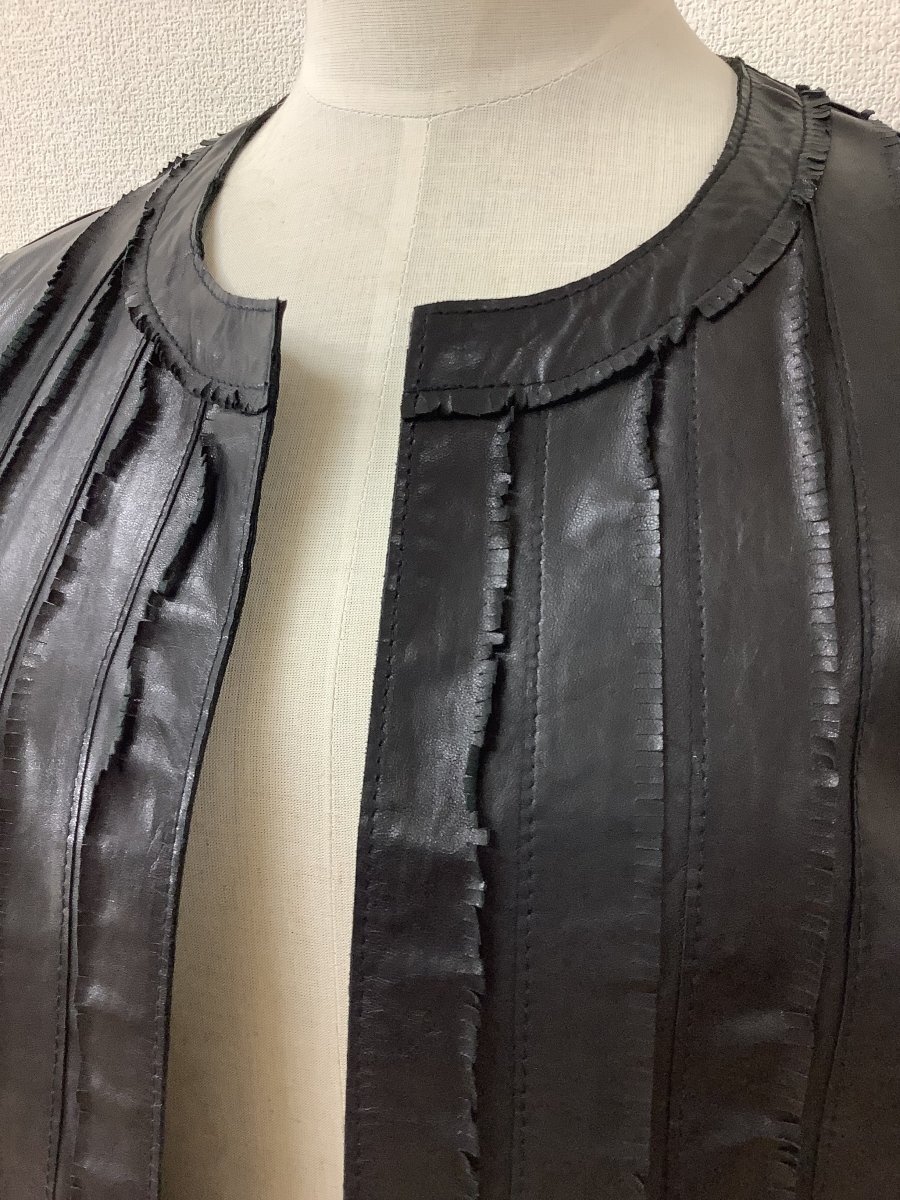管理番号:10^137022 レリアン 羊革ジャケット 黒 ふち切り込みフリンジ 表示サイズ:7 実寸(参考)