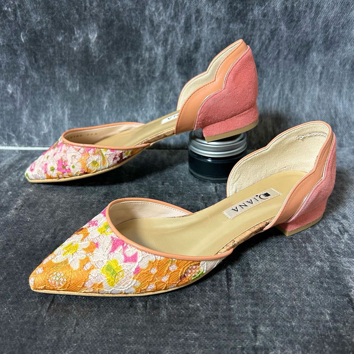 【新古品】DIANA ダイアナ パンプス デザインパンプス 花柄 フラワー 22.5cm ピンク *ES