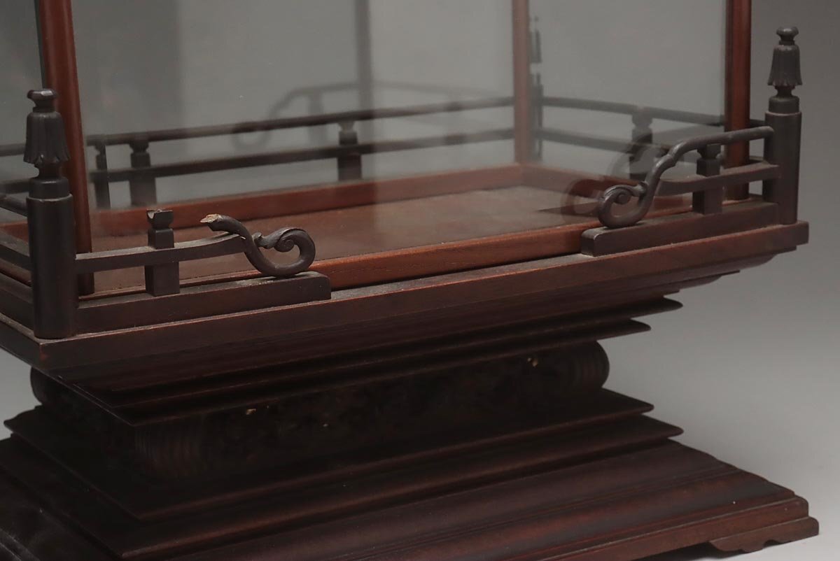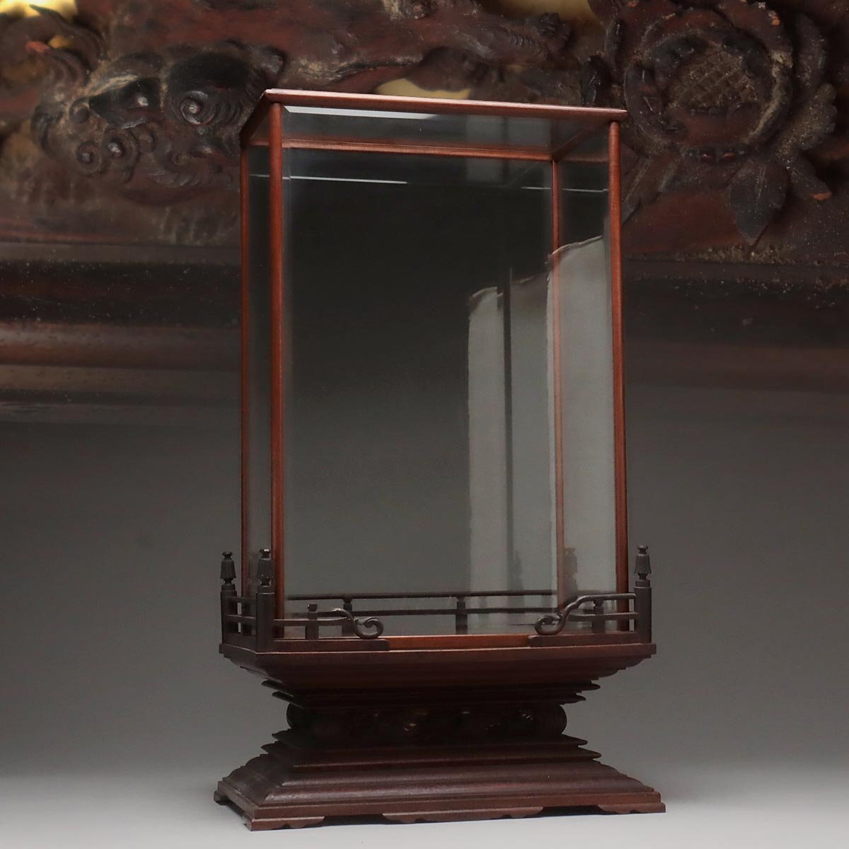 | ◆ 仏教美術 浄土真宗 唐木縁かぶせガラス付 唐木透彫須弥壇 全高53.5cm・唐木須弥壇・仏台・佛像台・厨子台 ◆