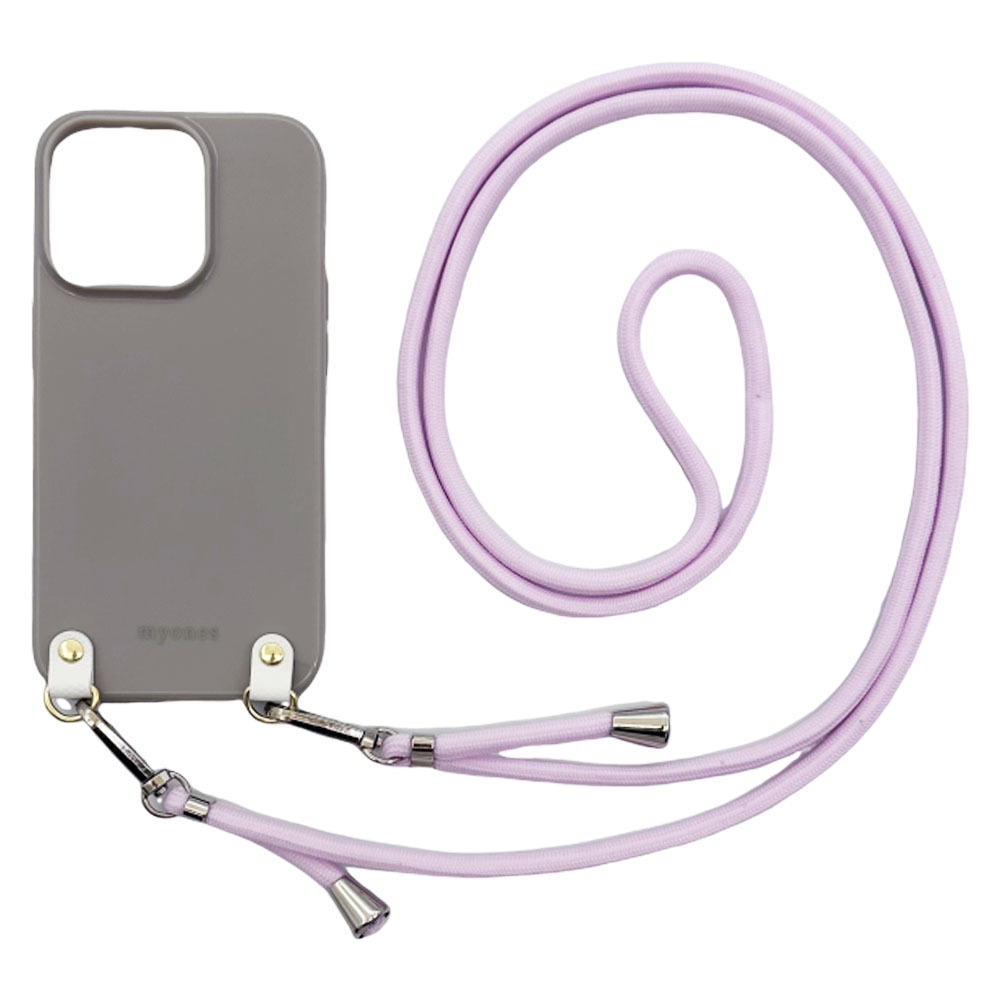 キッズケータイ SH-03M docomo(くすみグレー/ライトピンク)ひも TPU ストラップ 肩掛け 首かけ 斜めが スマホケース かわいい