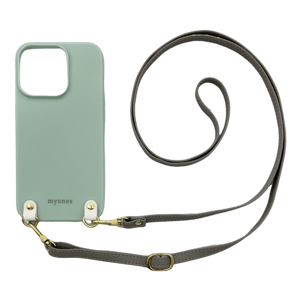 キッズケータイ KY-41C スマホケース(くすみグリーン/ライトグレー)ソフトケース ストラップ 肩掛け 首かけ