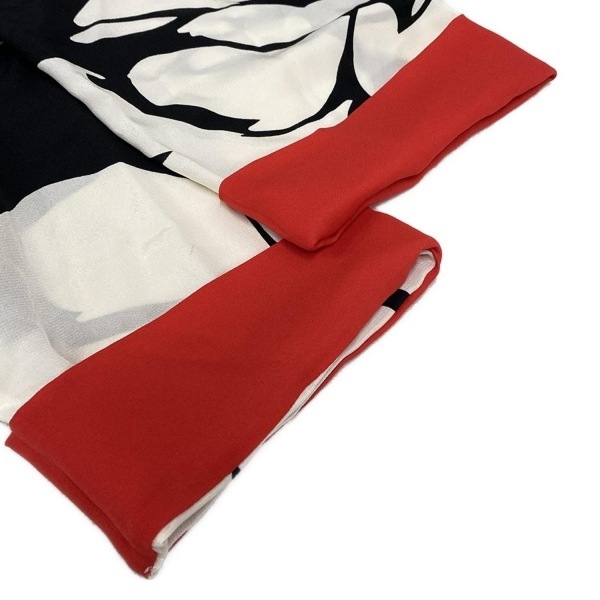 エスカーダ ESCADA サイズ32 S - 白×黒×レッド レディース 七分袖/ひざ丈/シルク/花柄 ワンピース