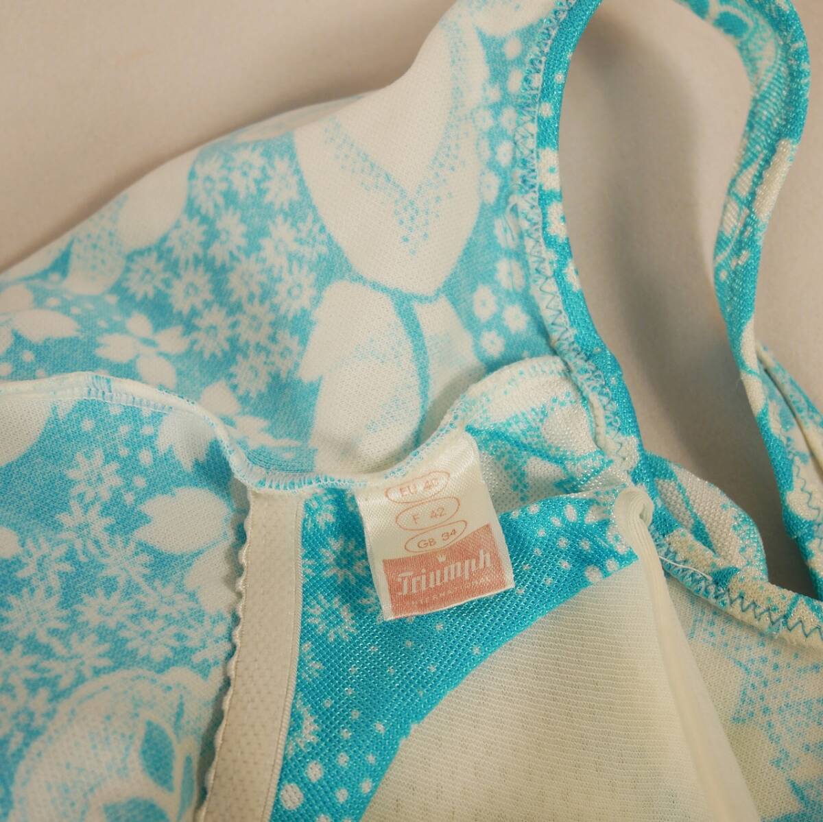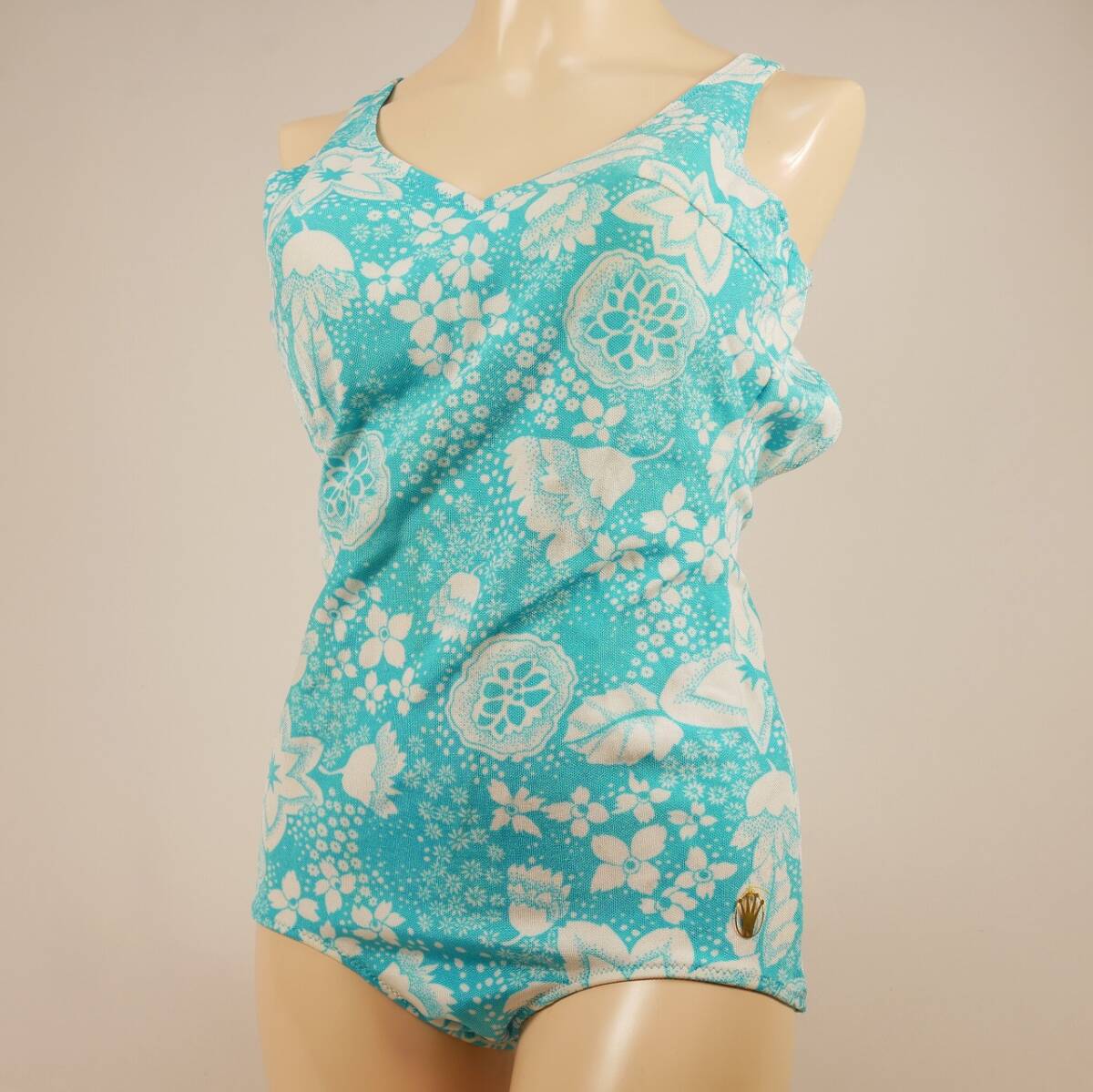 7837 トリンプ レトロ花柄プリント ワンピース水着 Mくらい ブルー 匿名配送