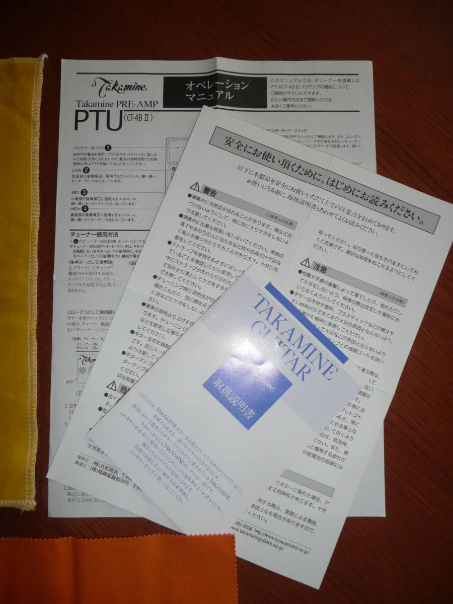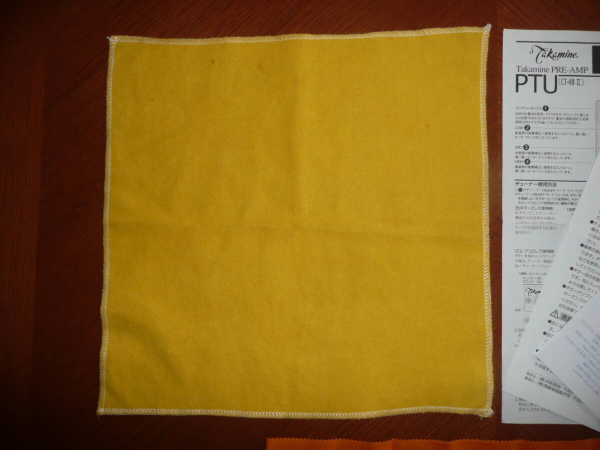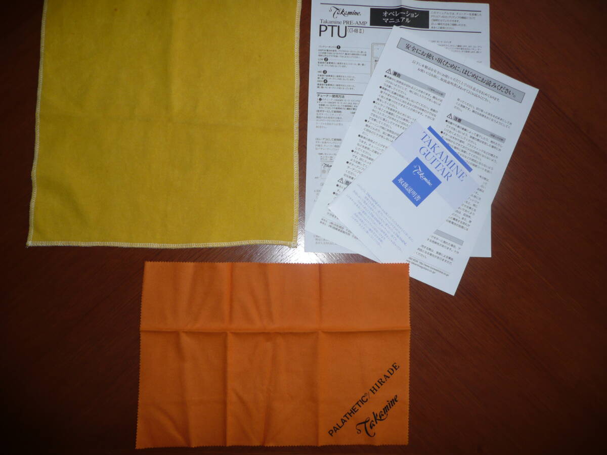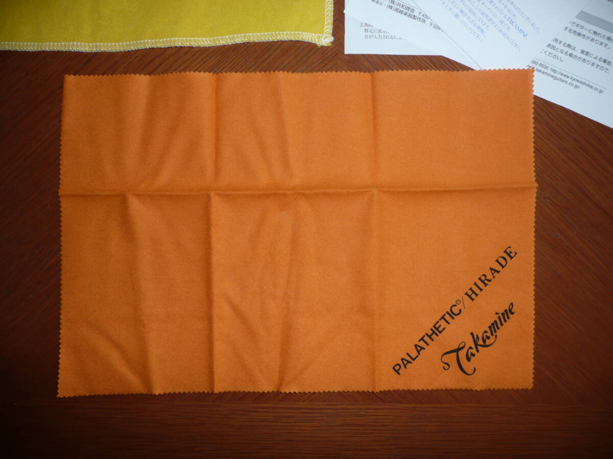 [新品]Takamine タカミネ ①PALATHETIC/HIRADE ギタークロス 橙色 30×20cm②PTU-510 取説類×2点+NOブランド ギタークロス 黄色 29×29cm