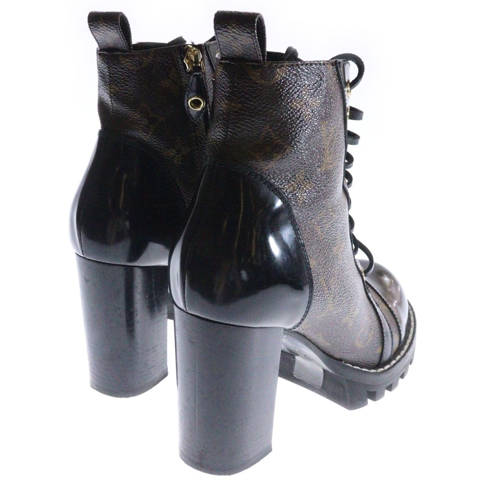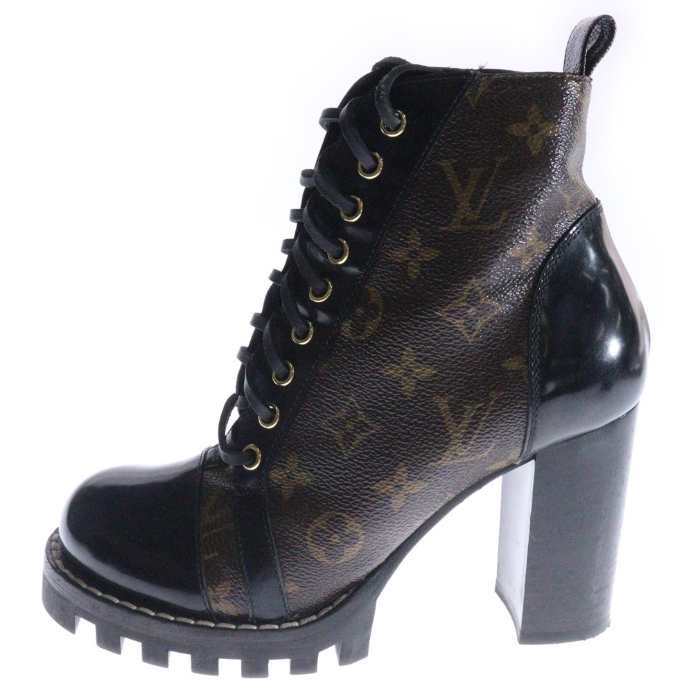 LOUIS VUITTON ルイヴィトン モノグラム スタートレイル ブーツ ヒール シューズ ブラウン×ブラック #38 レディース