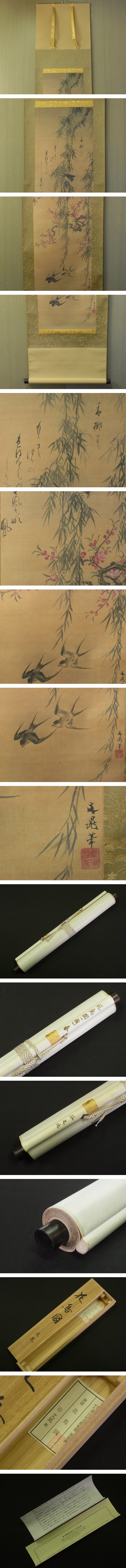 【工芸印刷】 t1846 蔵出 谷文晁 花鳥図 絹本 日本画 文人画家 風景 骨董 書画 アンティーク