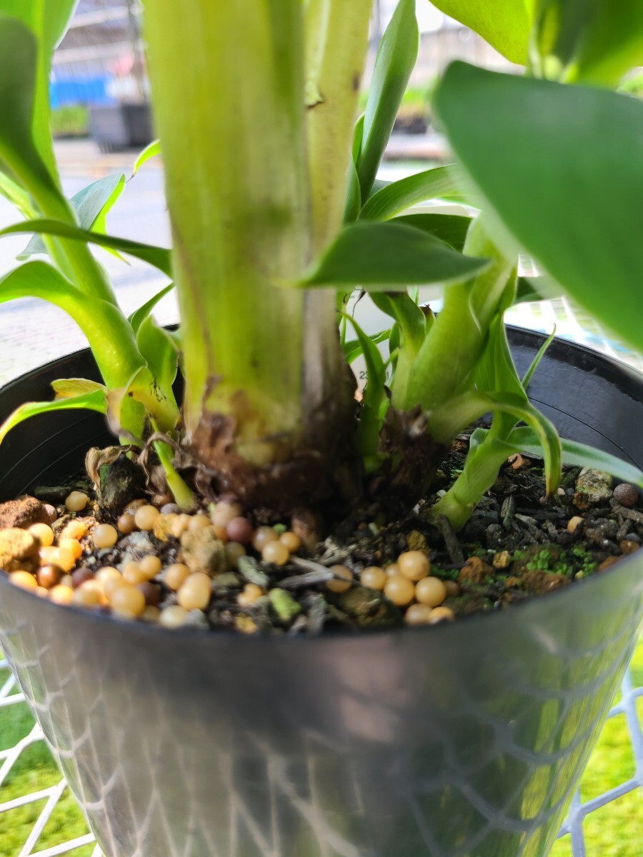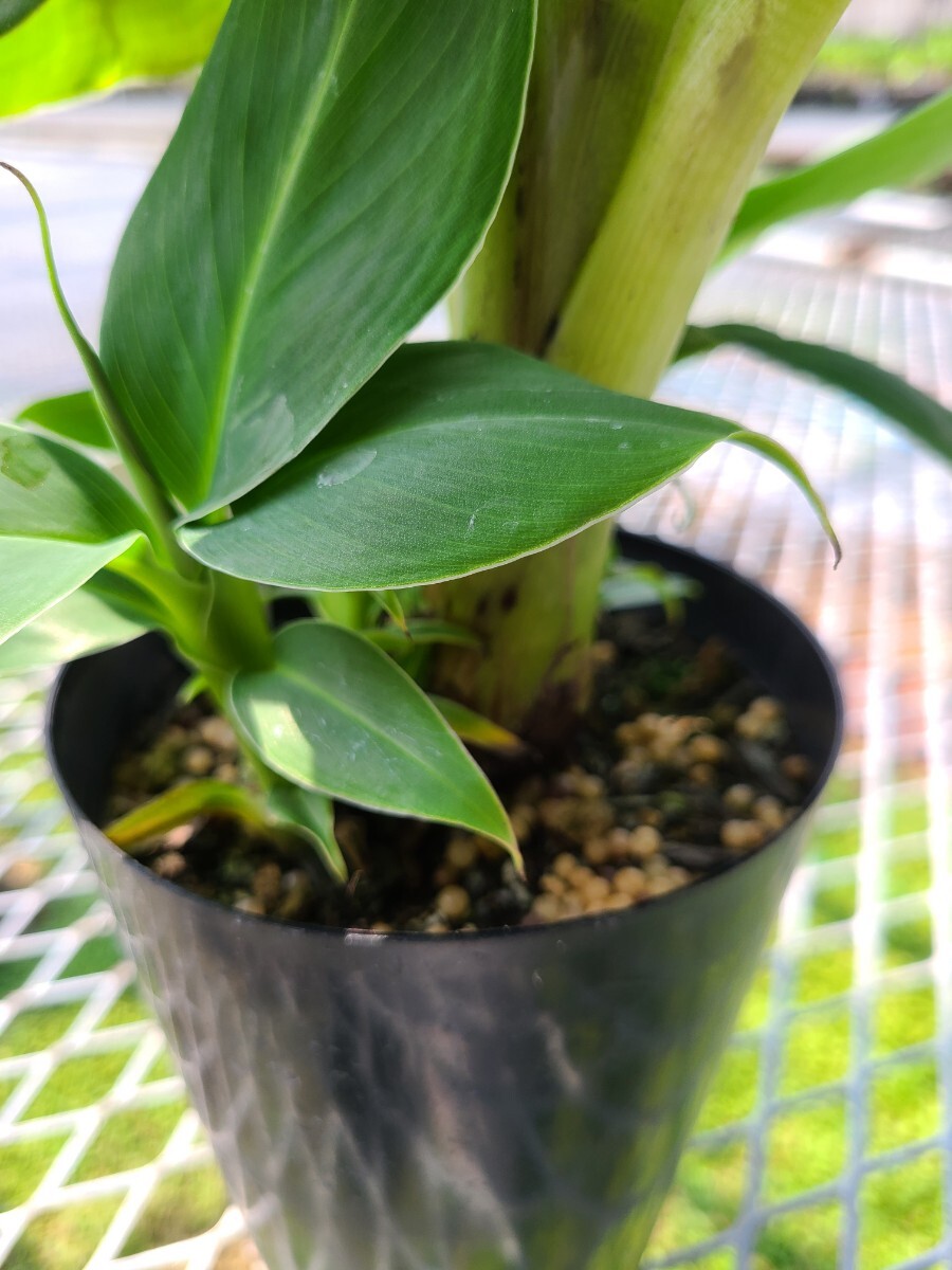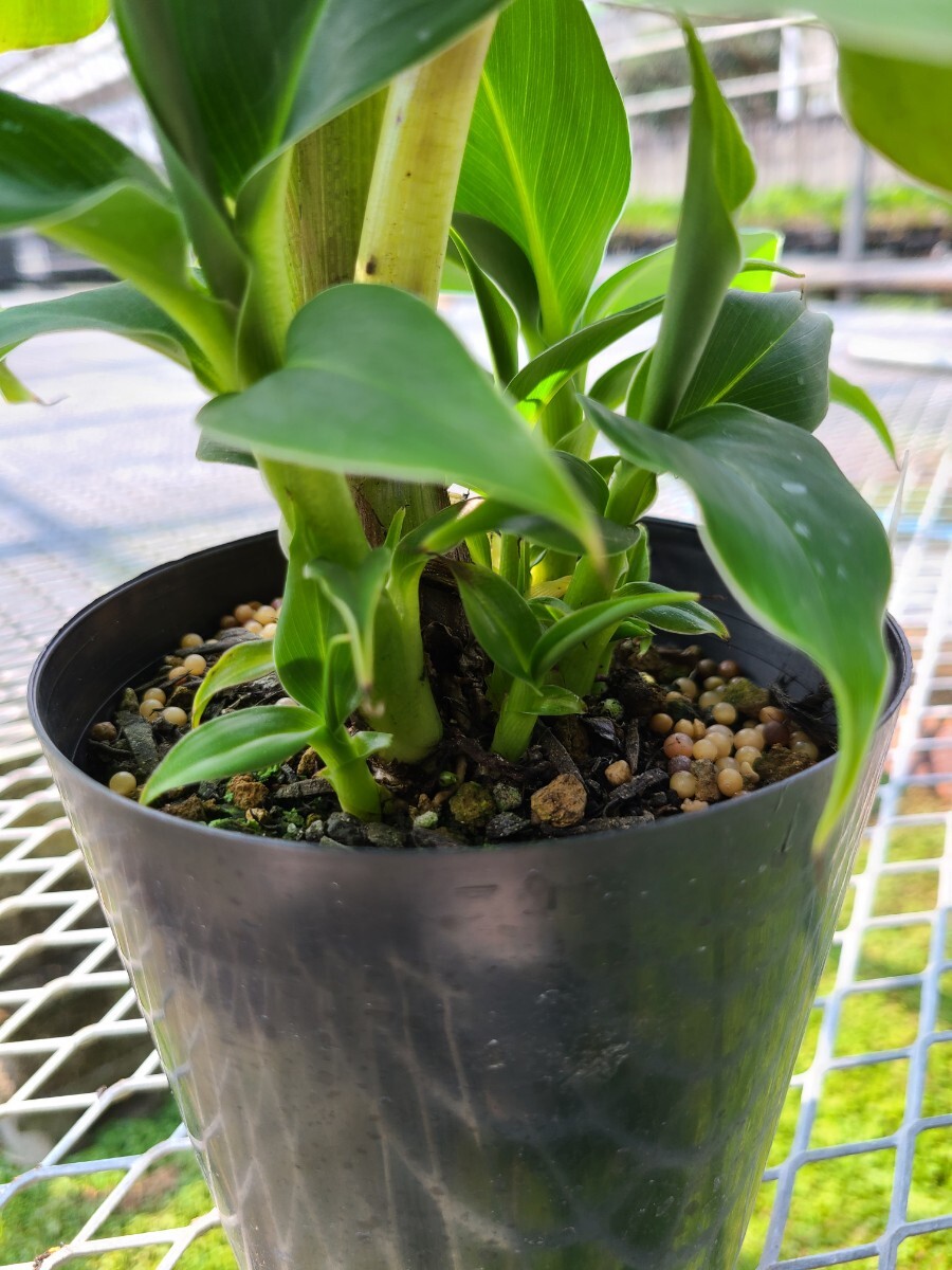 鉢植えで育ちます。コンパクトさが魅力のバナナの木(ドワーフ・モンキー)です。