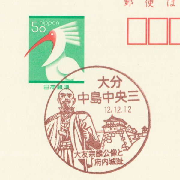 風景印☆初日☆大分・大分中島中央三・H12.12.12・大友宗麟