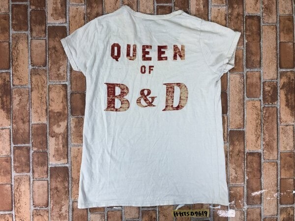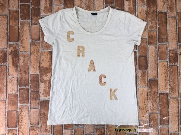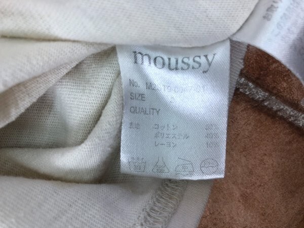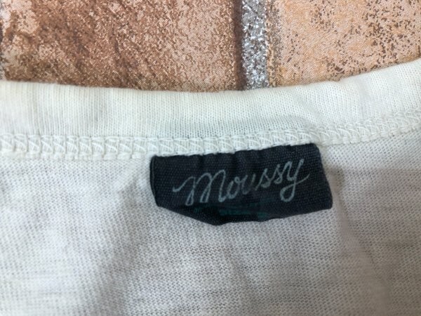 MOUSSY マウジー レディース 英字プリント バックプリント Uネック 半袖Tシャツ ダメージ加工 2 アイボリー系 綿ポリエステルレーヨン