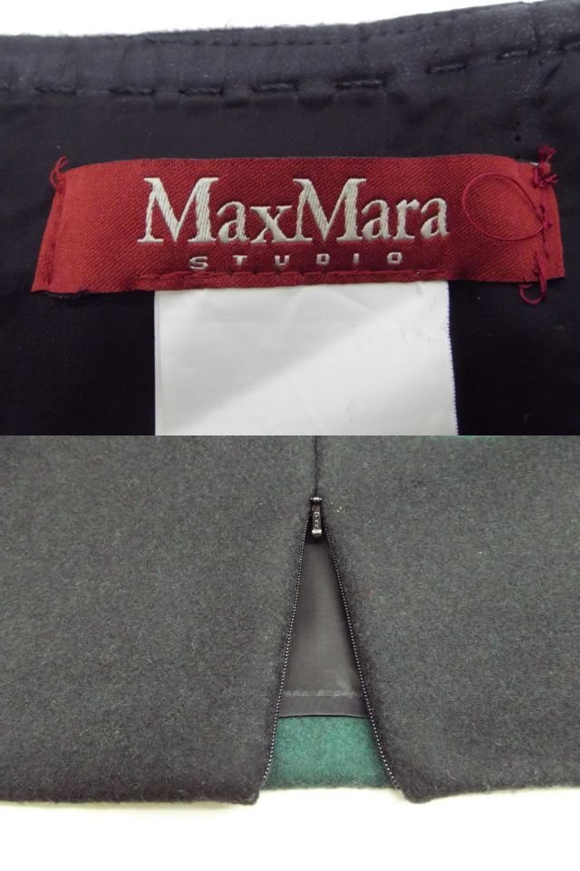 美品★MaxMara STUDIO◎マックスマーラ/スカート/ウール/ブラック/グリーン/W68cm/38サイズ