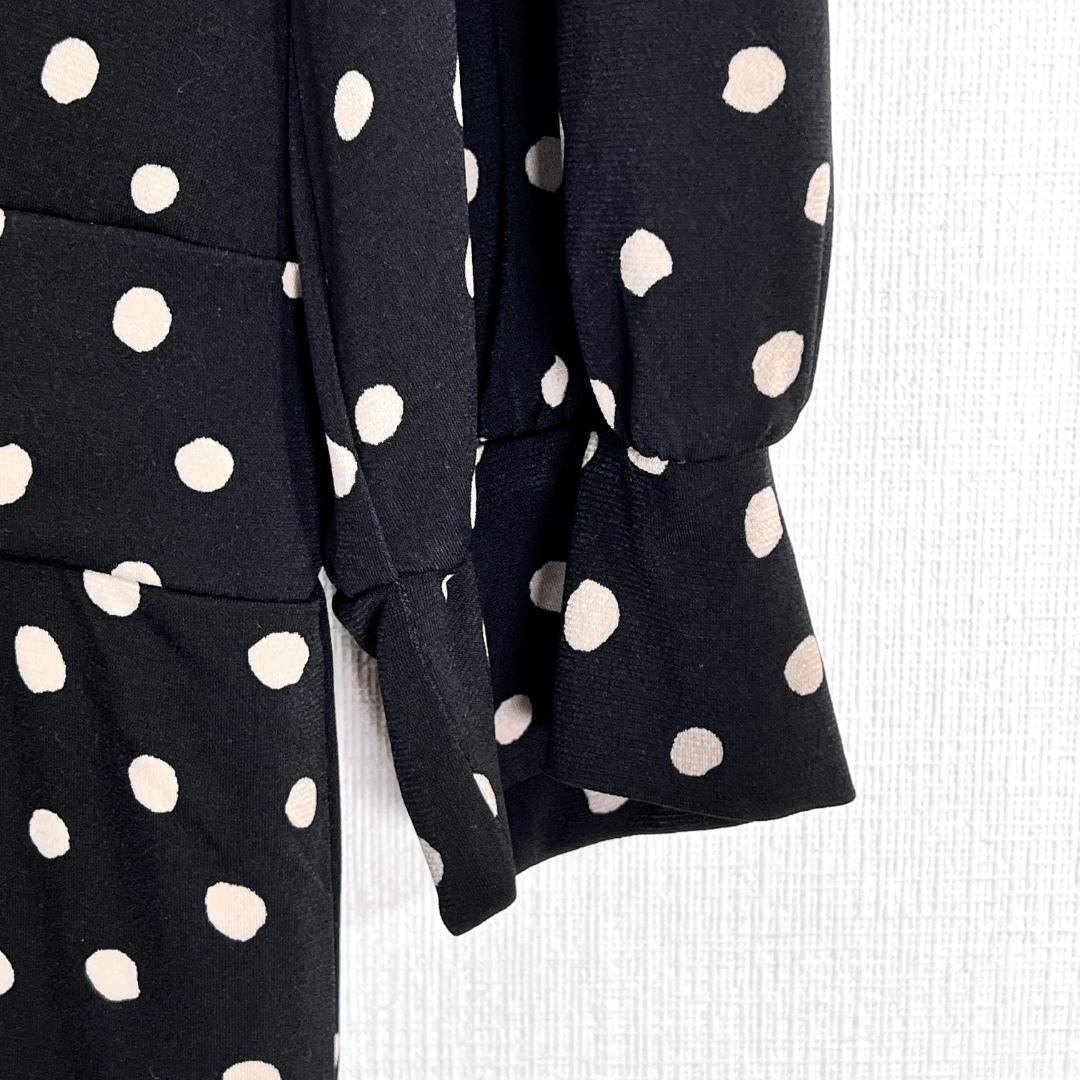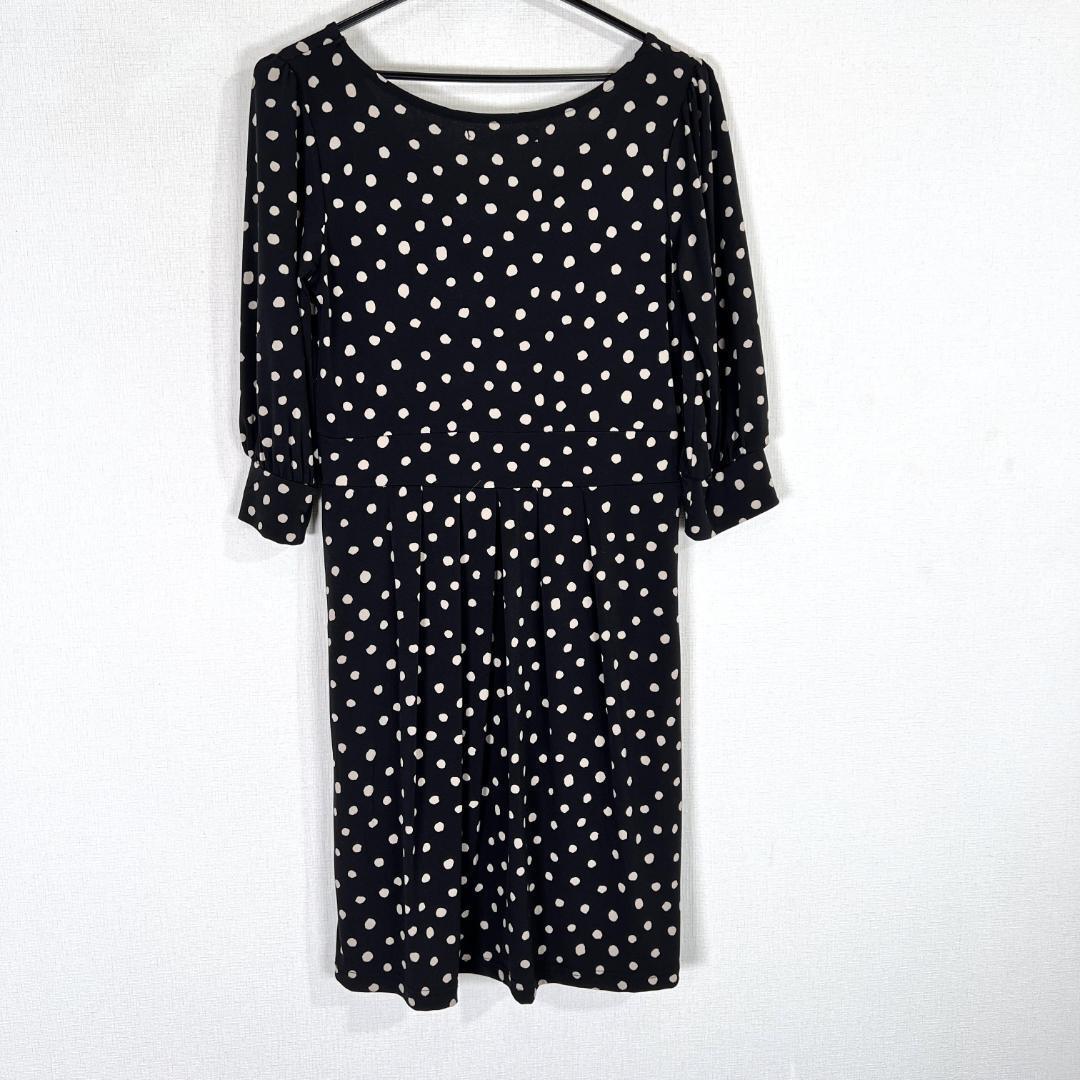 女性用の黒 ブラック系の水玉 ドット柄 五分袖ワンピース 柄物ワンピース カジュアルワンピースです。中古品ですが目立つような傷や汚れもなくまだまだ使っていただけます。古着 ロペピクニック 株式会社ジュン