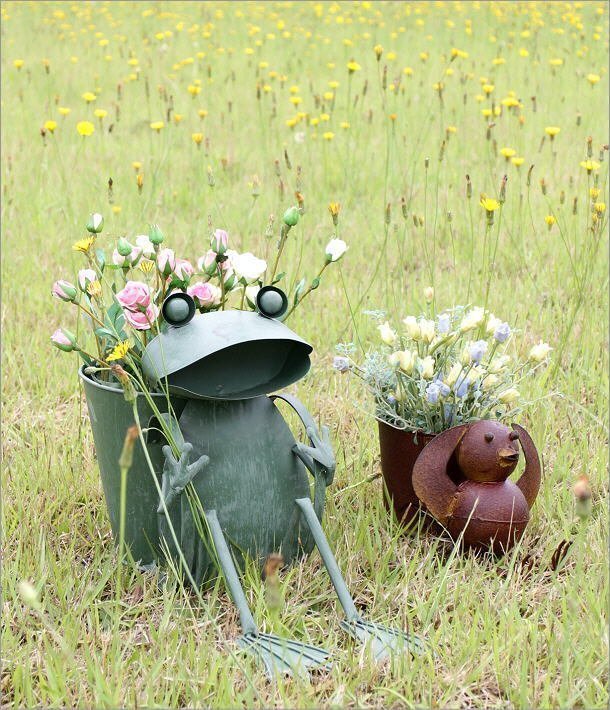 | いつものガーデンに 物語が生まれそうな 可愛くてユニークなデザインの アニマルモチーフの鉢カバー お花摘みの帰り・・・ ちょっぴり疲れてしまったカエルさんが ちょこんと座ってひとやすみ。 背中のポットがリュックになったデザインで キッチンに置いて じゃがいもや玉ねぎ、にんじんなど 野菜を入れておくと カエルさんの自慢の畑で収穫してきたみたいで 思わずにっこりのオブジェになりそう♪ 商品名 : ブリキのカエル フラワーポット 商品番号 : mty8459 全体サイズ(cm) : 幅17×奥行41×高さ26.5 ポット内寸 : 直径17×深さ17.5 重量 : 850g 材質 : アイアン 生産国 : 中国 ※底穴が開いています ※塗装ムラや小傷、凹み等によりシャビーな風合いを表現した商品で、がたつきが見られる場合があります ※直射日光や風雨によるダメージは避けられません。より長く楽しむために定期的なメンテナンスをお勧めします ※ディスプレイによる色の違いはご了承下さい |