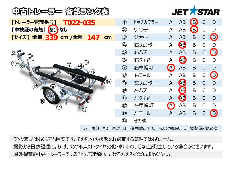 こちらのトレーラーは現状販売となります、ノークレーム・ノーリターン商品であることをご理解の上、ご購入願います。