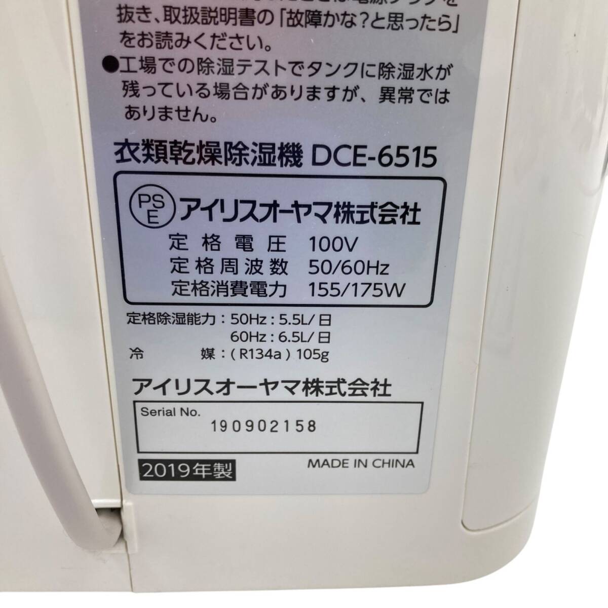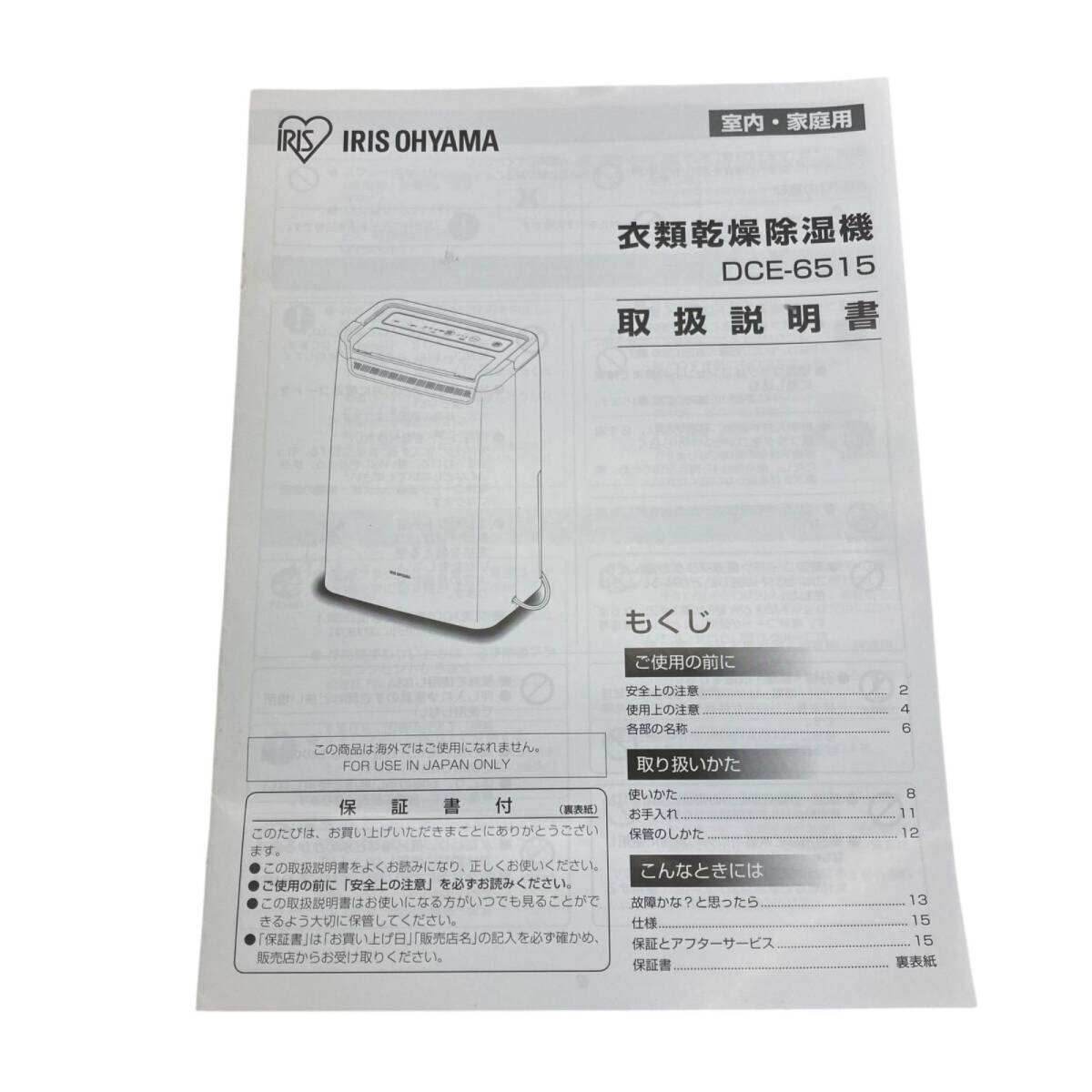 186000 現状品 IRISOHYAMA アイリスオーヤマ IRISOHYAMA アイリスオーヤマ 衣類乾燥除湿機 DCE-6515 ホワイト